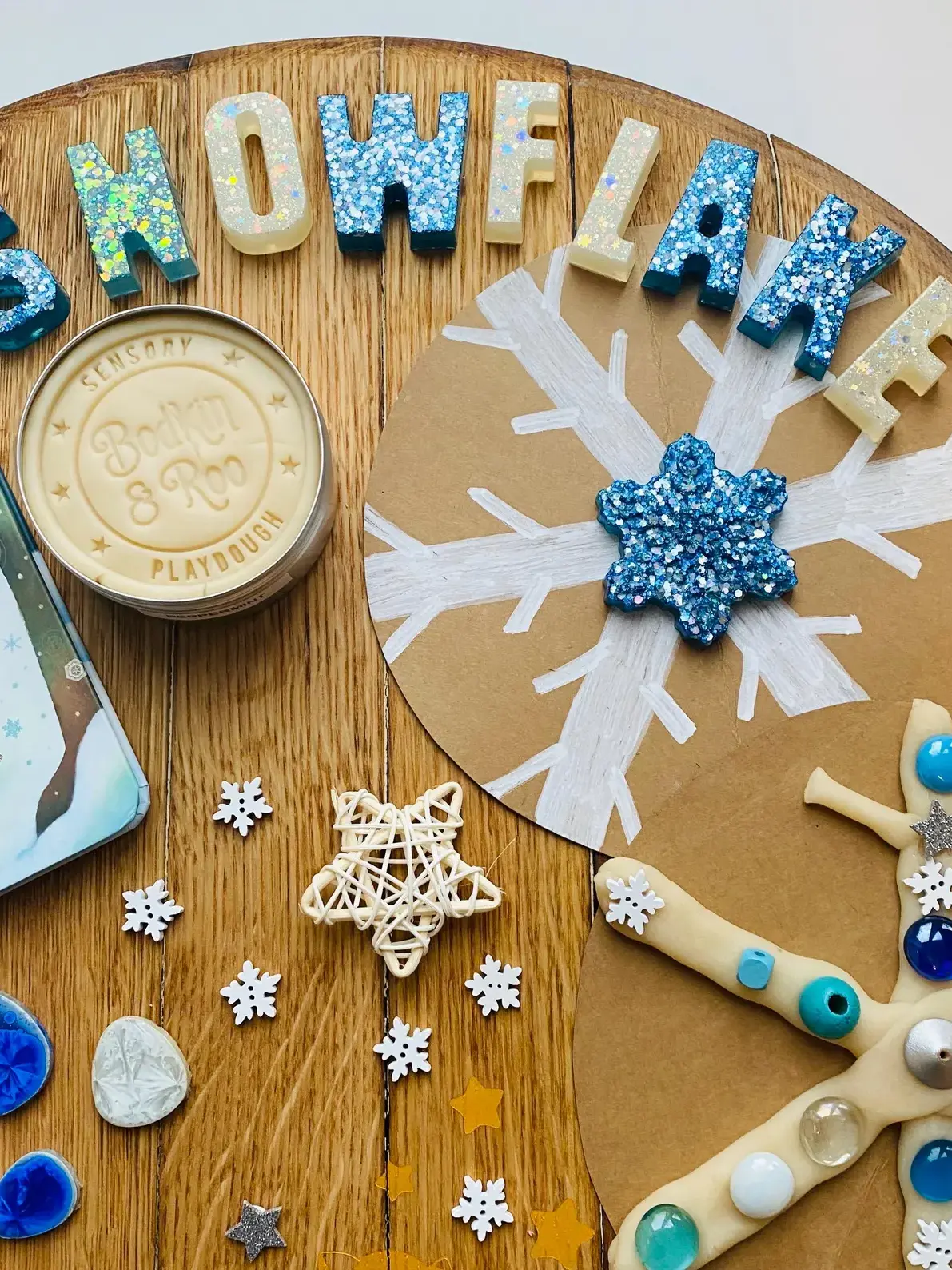 Let it snow with our snowflake stamp and super soft white chocolate play dough! Perfect for little hands to explore and create wintery scenes. The perfect advent gift, stocking filler, or festive activity to keep kids busy this Christmas...