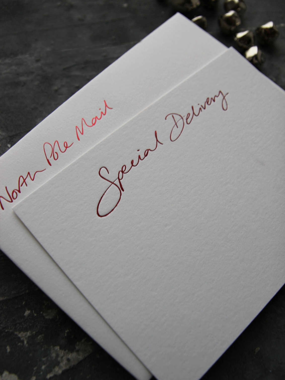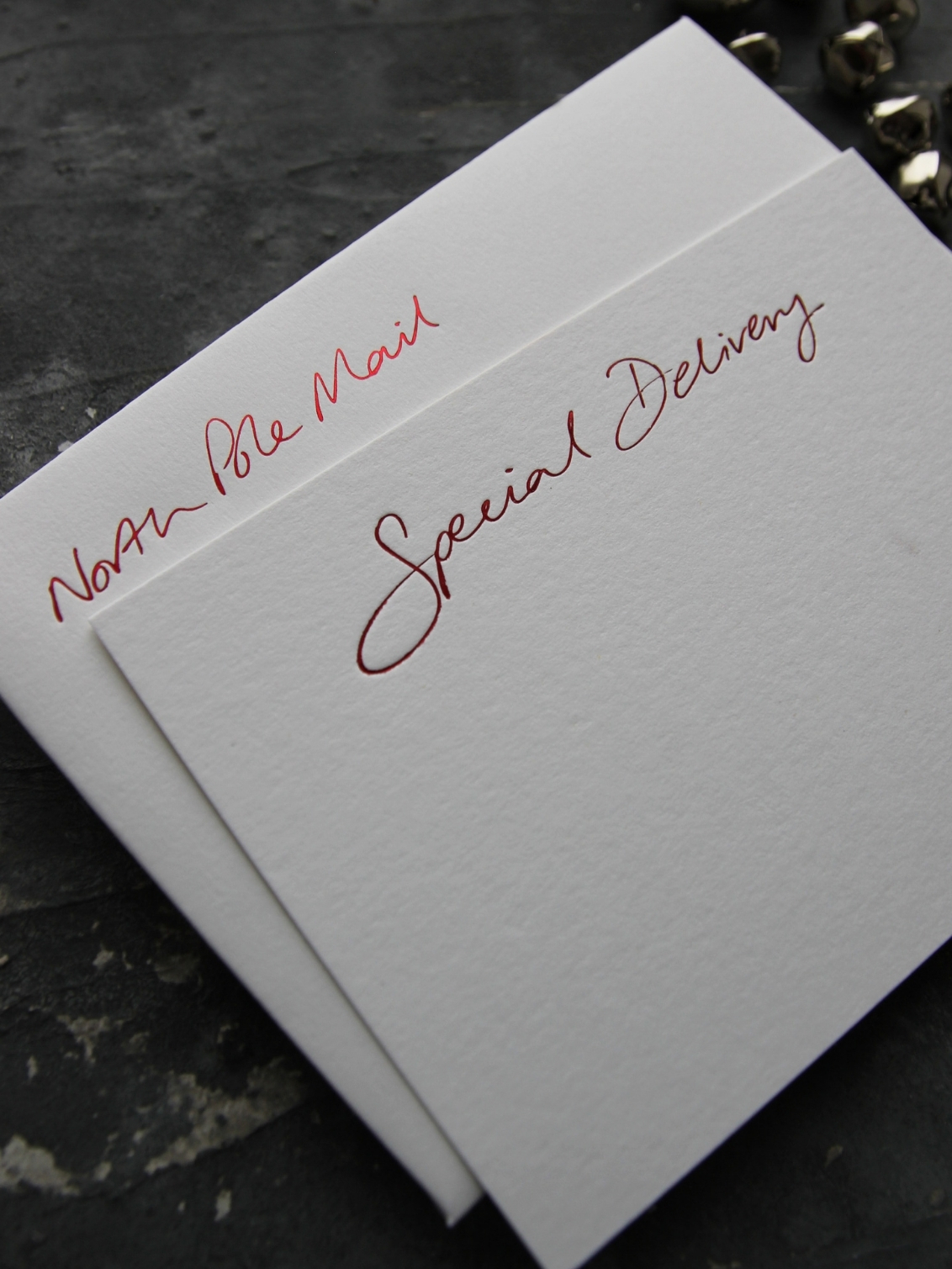 Comes with a matching envelope, hand-foiled in red with 'North Pole Mail' for maximum festive impact.