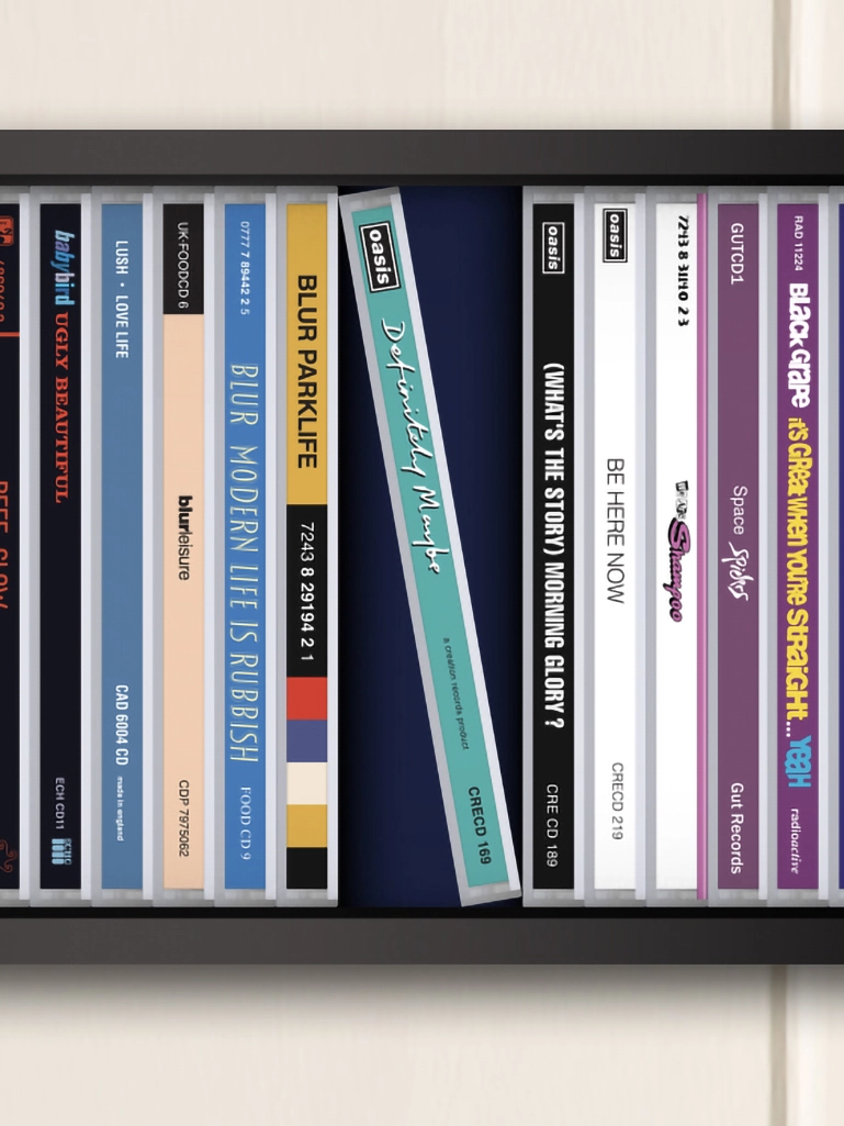 A nostalgic love letter to 90s British music, Britpop Spines captures the energy and attitude of an iconic era. Keith Haynes curates a vibrant line-up of CD spines from legends like Blur, Pulp and Oasis, assembling them into a beautifully structured visual playlist.