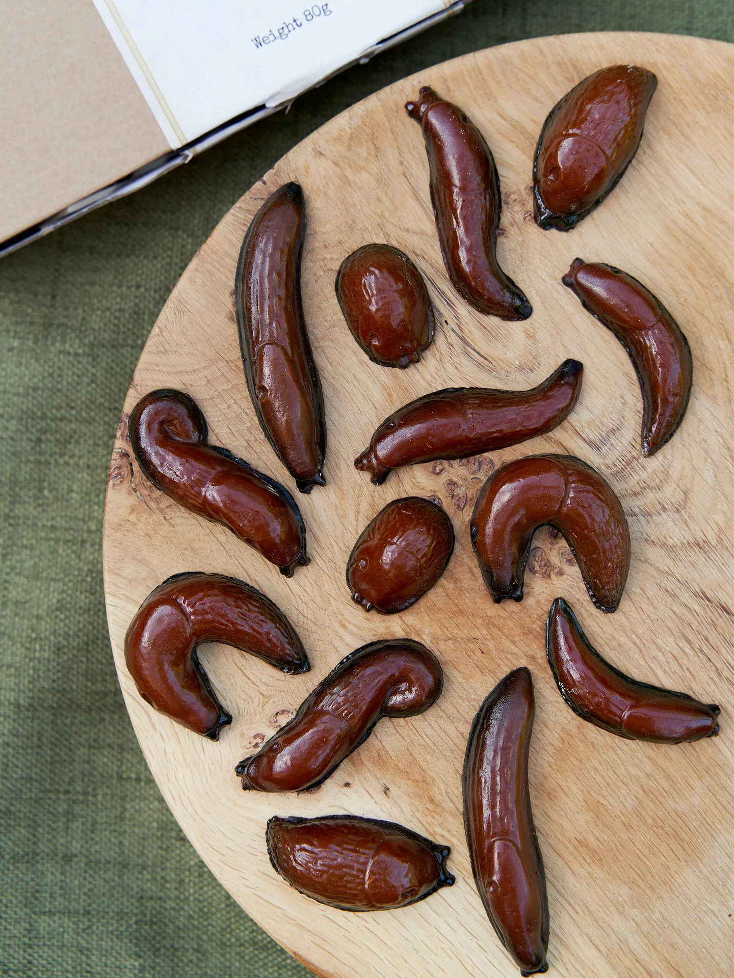 Chocolate Slugs: These confectionery creatures make a jaw dropping addition to your Halloween table scape, the perfect creepy crawlies for a child’s birthday cake, or send them to Ron Weasley at a Harry Potter themed party! 14 Milk, Dark and White solid chocolate slugs in various slimy poses.