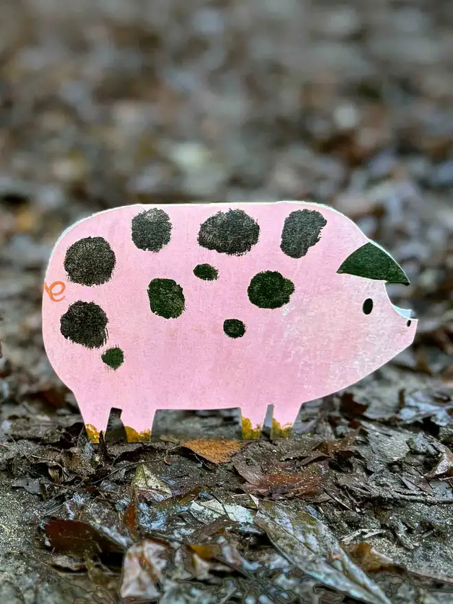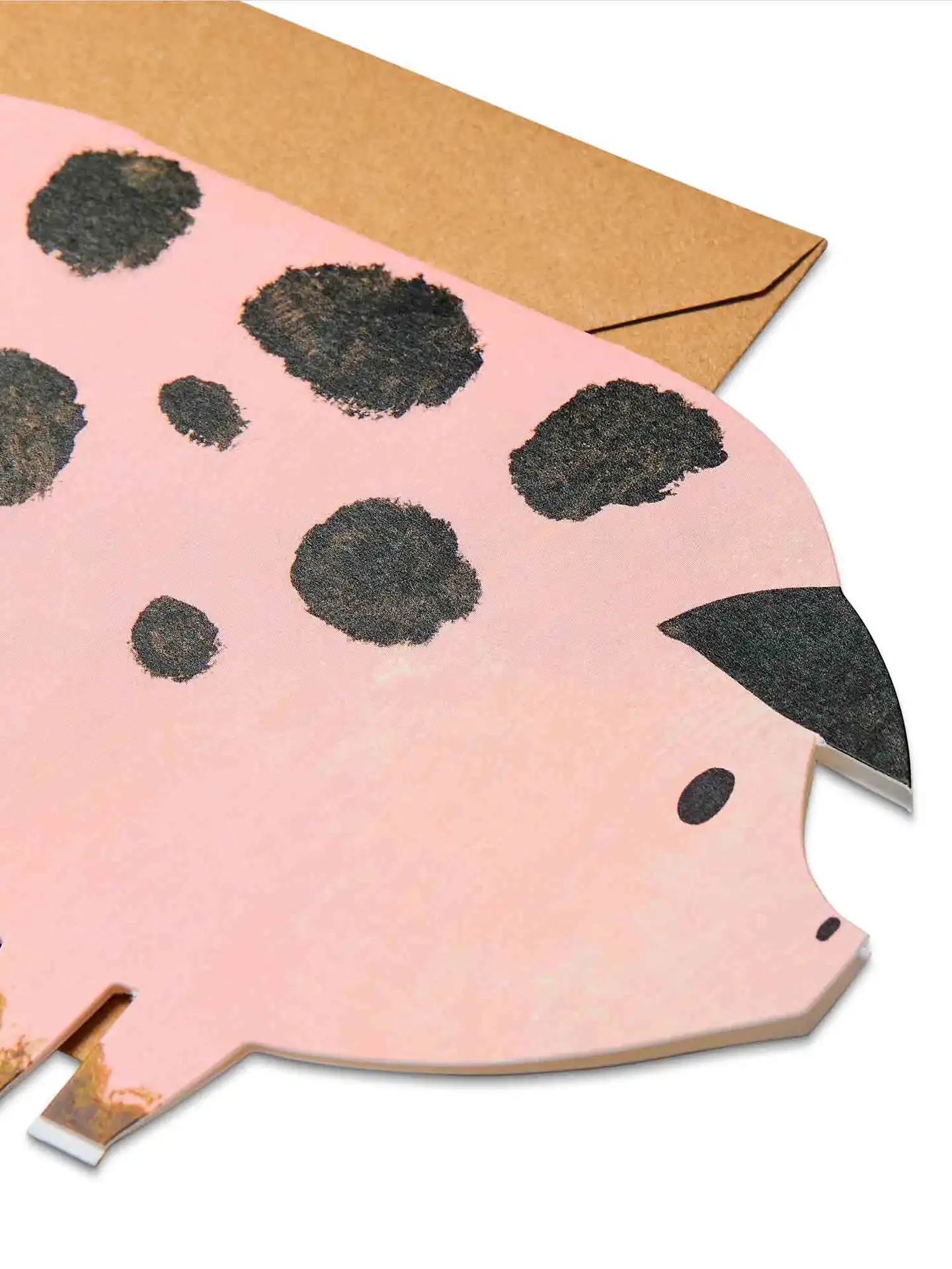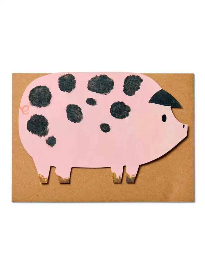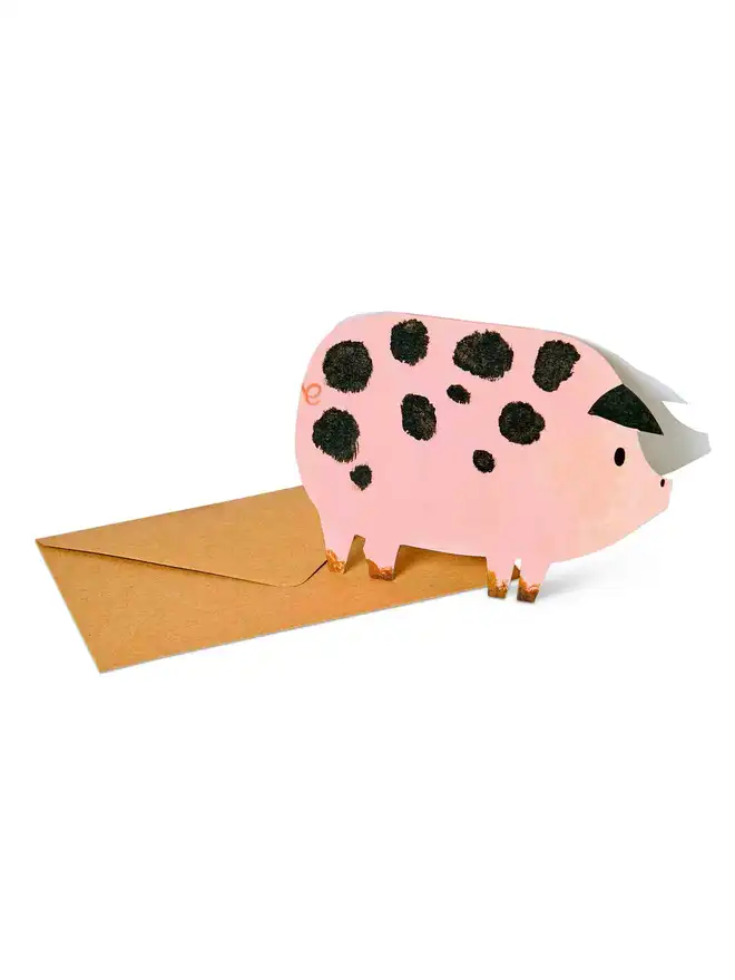 Bring a smile to any occasion with this spotty pig greeting card, featuring joyful original artwork by award-winning designer Alice Lickens. Reproduced on high quality recycled paper and die-cut into a distinctive pig silhouette, the friendly pig illustra...