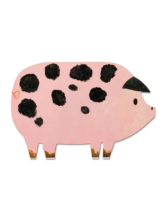 Bring a smile to any occasion with this spotty pig greeting card, featuring joyful original artwork by award-winning designer Alice Lickens. Reproduced on high quality recycled paper and die-cut into a distinctive pig silhouette, the friendly pig illustration has broad appeal — equally suited to animal lovers, children, and food enthusiasts alike. Blank inside, this versatile pig card works beautifully as a birthday card, kids greeting card, or lighthearted gift for a foodie or home cook.