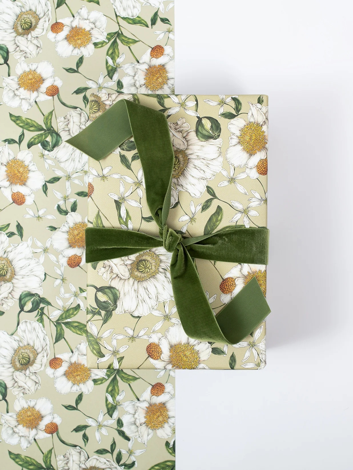 Intricately drawn luxury botanical wrapping paper on a pale green base. Printed on a lovely high quality recycled paper with vegetable inks.