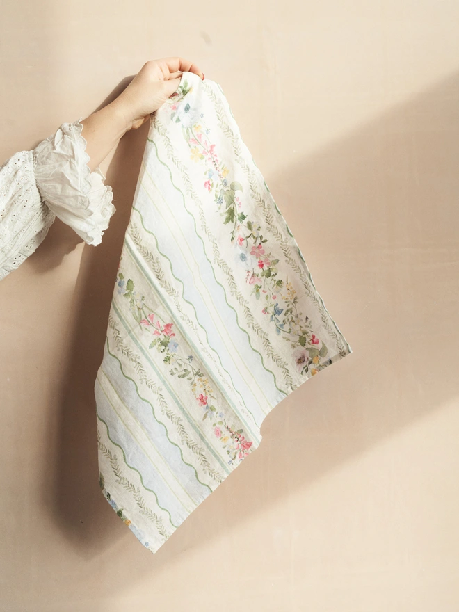 Introducing our Spring Carpet design. Inspired by the moment when wildflowers break through, creating a soft carpet of bluebells, daisies, anemones and buttercups. Set against stripes to keep your table feeling fresh...