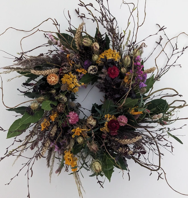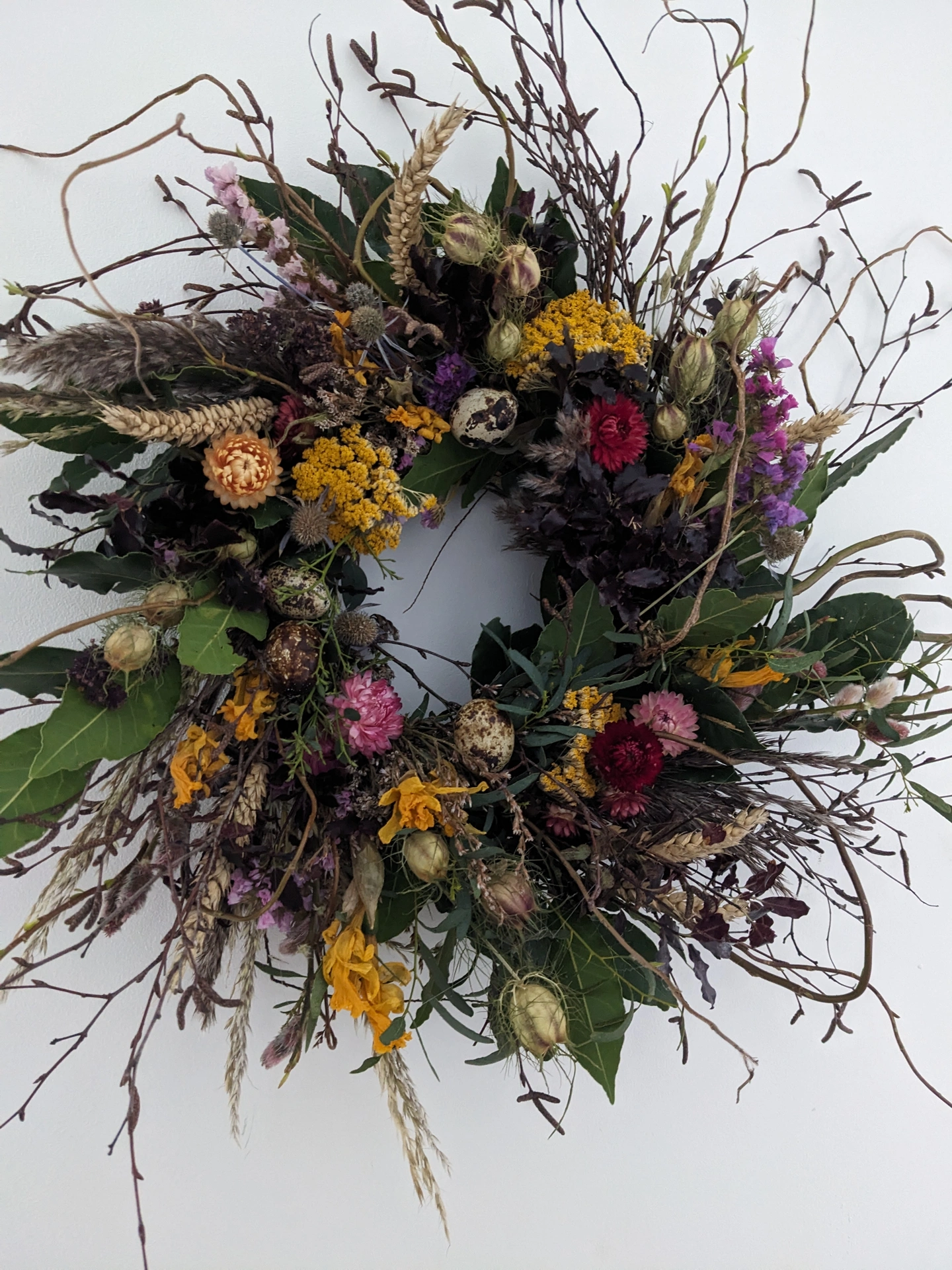 Flowers I use for my work are mostly grown and dried by me. The variety of flowers changing thorough the year with the seasons and growing conditions.