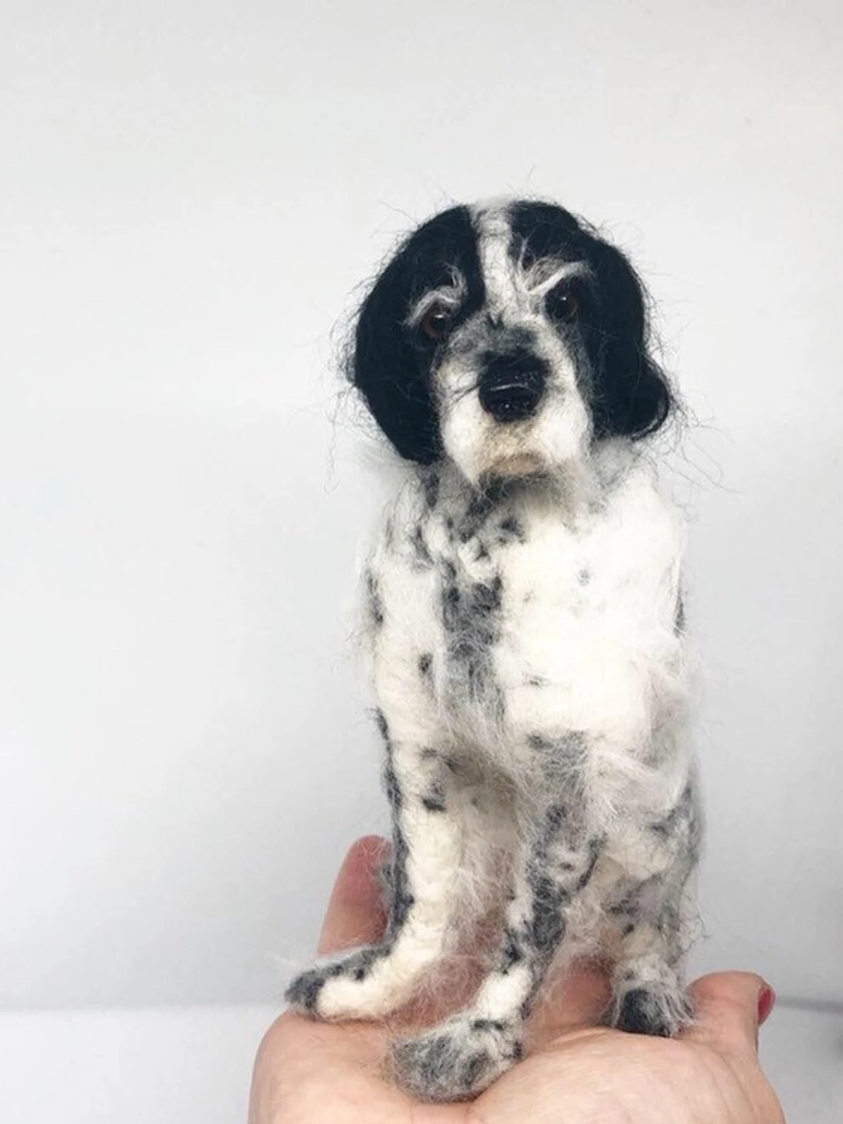 They are made completely by hand and no stuffing is used inside the miniatures. I make them using Merino wool, glass eyes and a hand made clay nose- all bespoke to your pet.