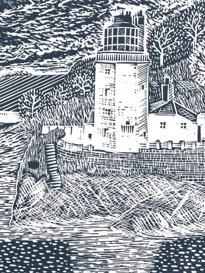 Limited edition lino print, inspired by the beautiful St Anthony's Lighthouse in Roseland, Cornwall.