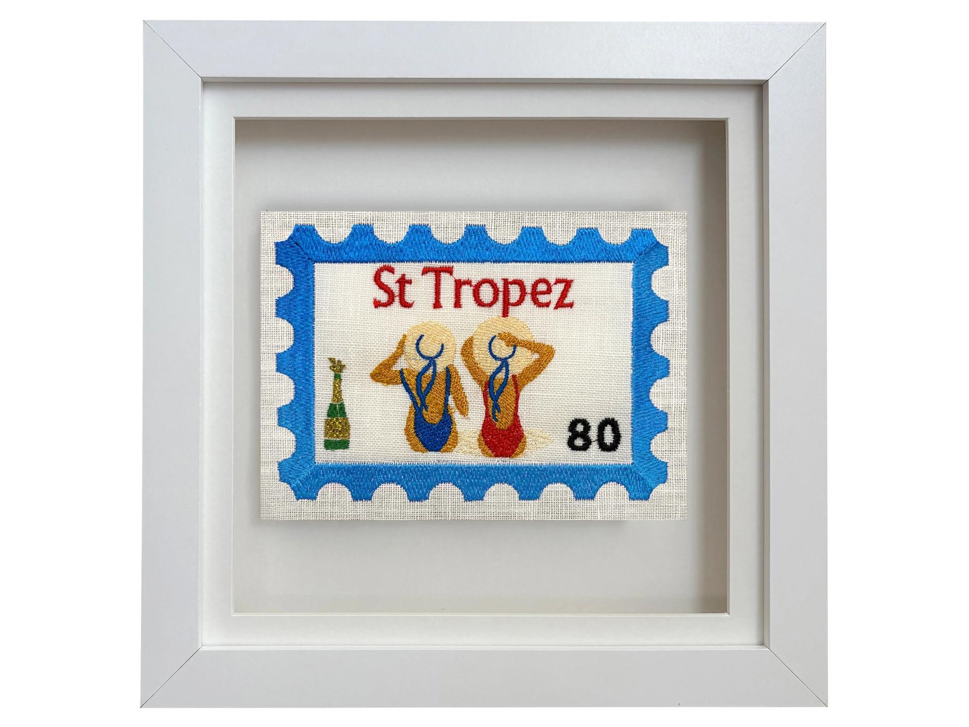 I wanted to create a range of unique embroidered stamps from inspirational places around the world; these are bright and fun with a playful twist. We stitch all of these in our London studio and use beautiful floating frames.