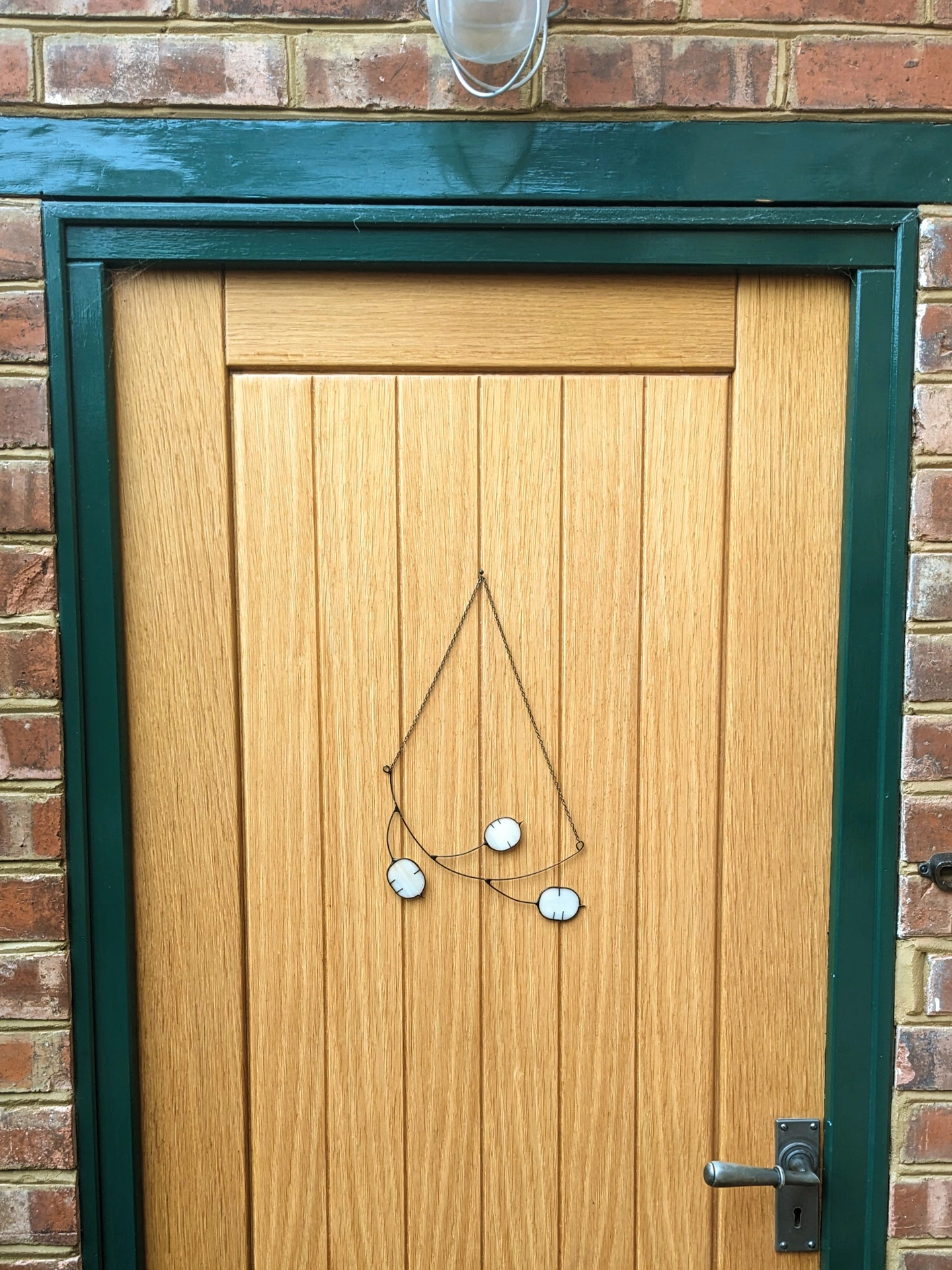 Each wreath is made to order and the glass shapes are cut entirely freehand (no templates) to replicate the variation seen in nature; as such your wreath will differ slightly from the photos shown here.