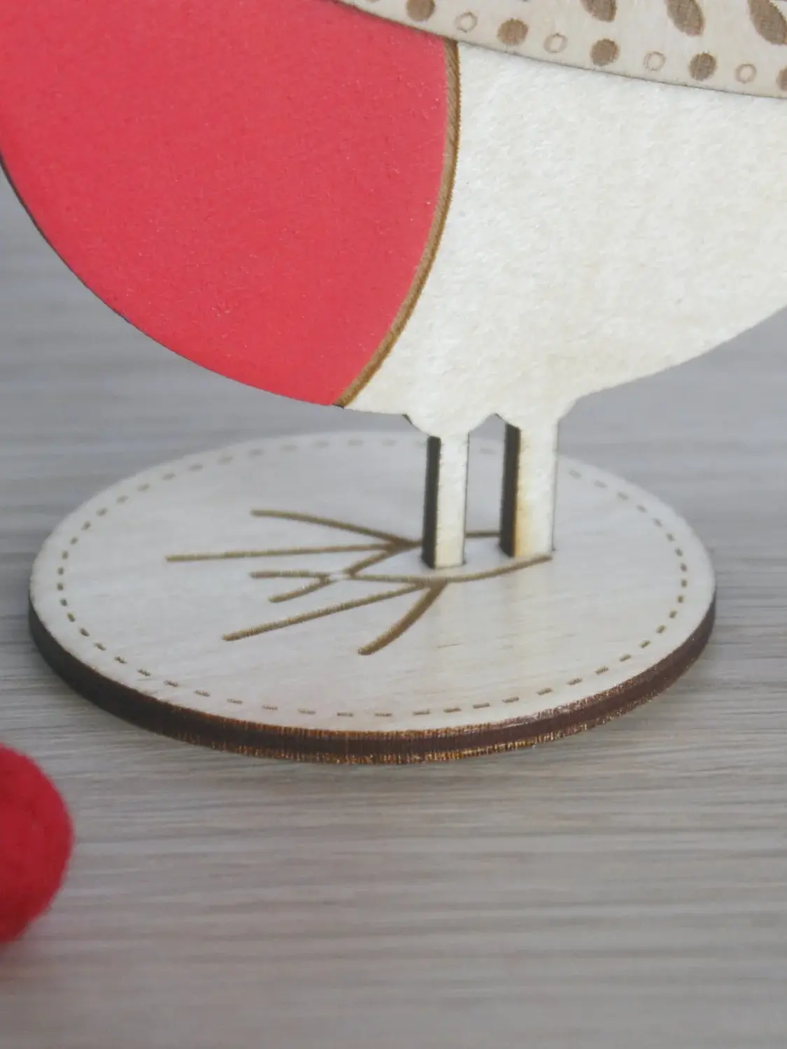Cut from 3mm ply, he's hand painted and features a pretty leaf pattern, etched onto his wing. He's finished with a glossy varnish to keep him looking lovely.