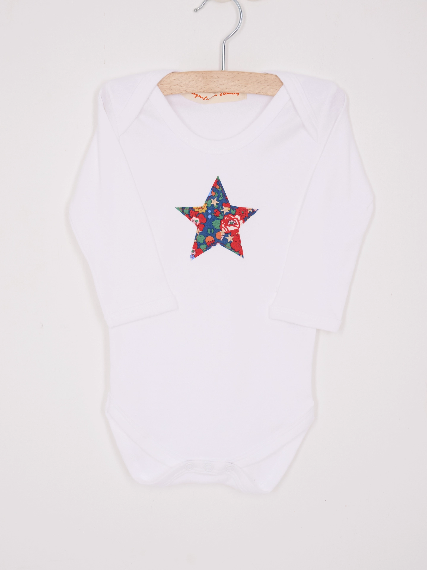 Introducing the Star Bodysuit in Liberty Betsy Star fabric, the perfect choice for your baby's first Christmas! Made from soft, high-quality cotton, this bodysuit is sure to spread holiday cheer and become a cherished part of your family's traditions. Don...