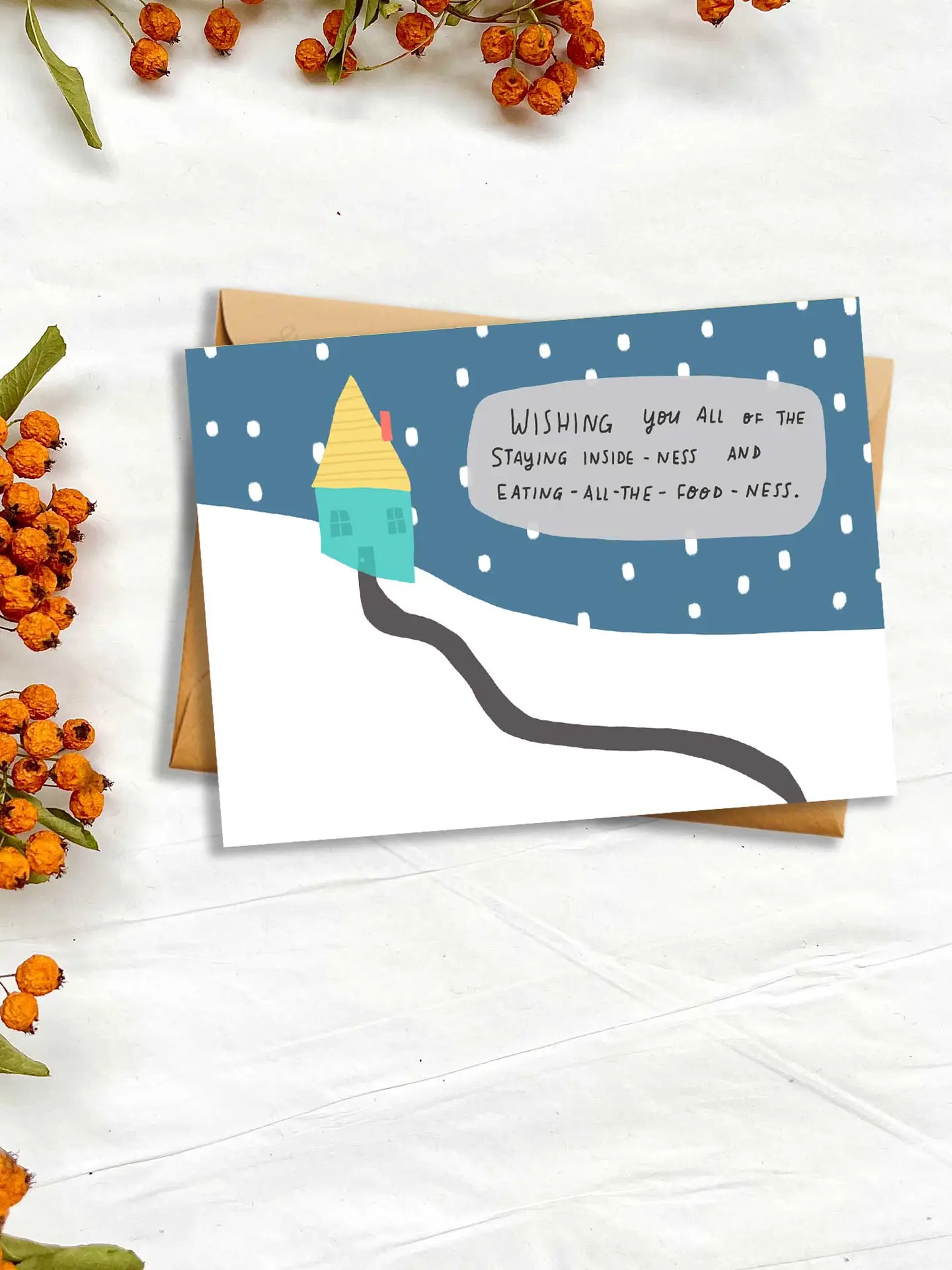 Pack of 4 x cards (2 x Staying Inside-ness' card, 2x 'Toasty Slippers' cards)
