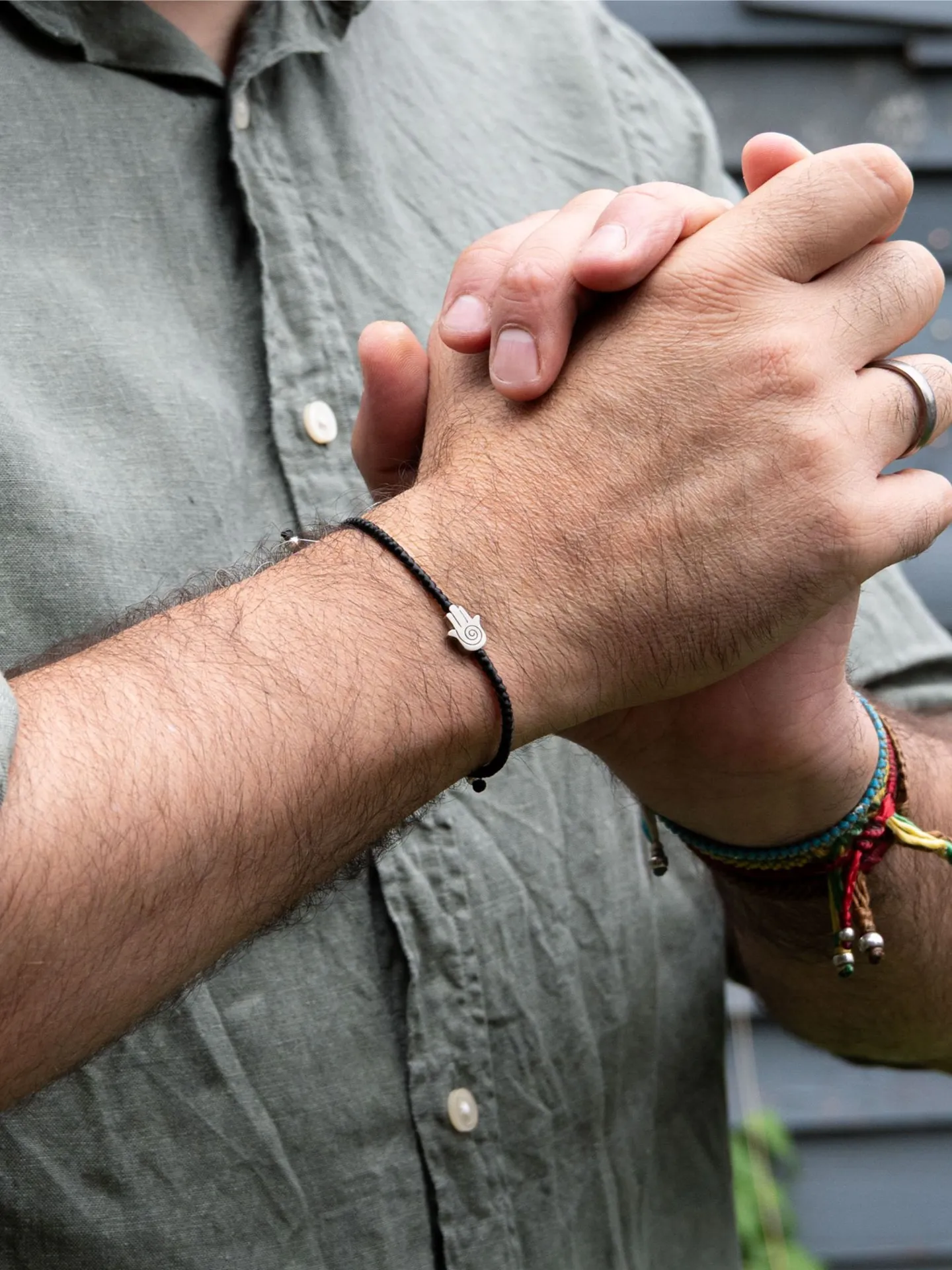 Add a touch of meaning to your everyday style with our handmade Hamsa Spiral Bracelet. Each one is crafted in Britain with our signature handwoven cord, designed to be comfortable, durable, and easy to wear every day.