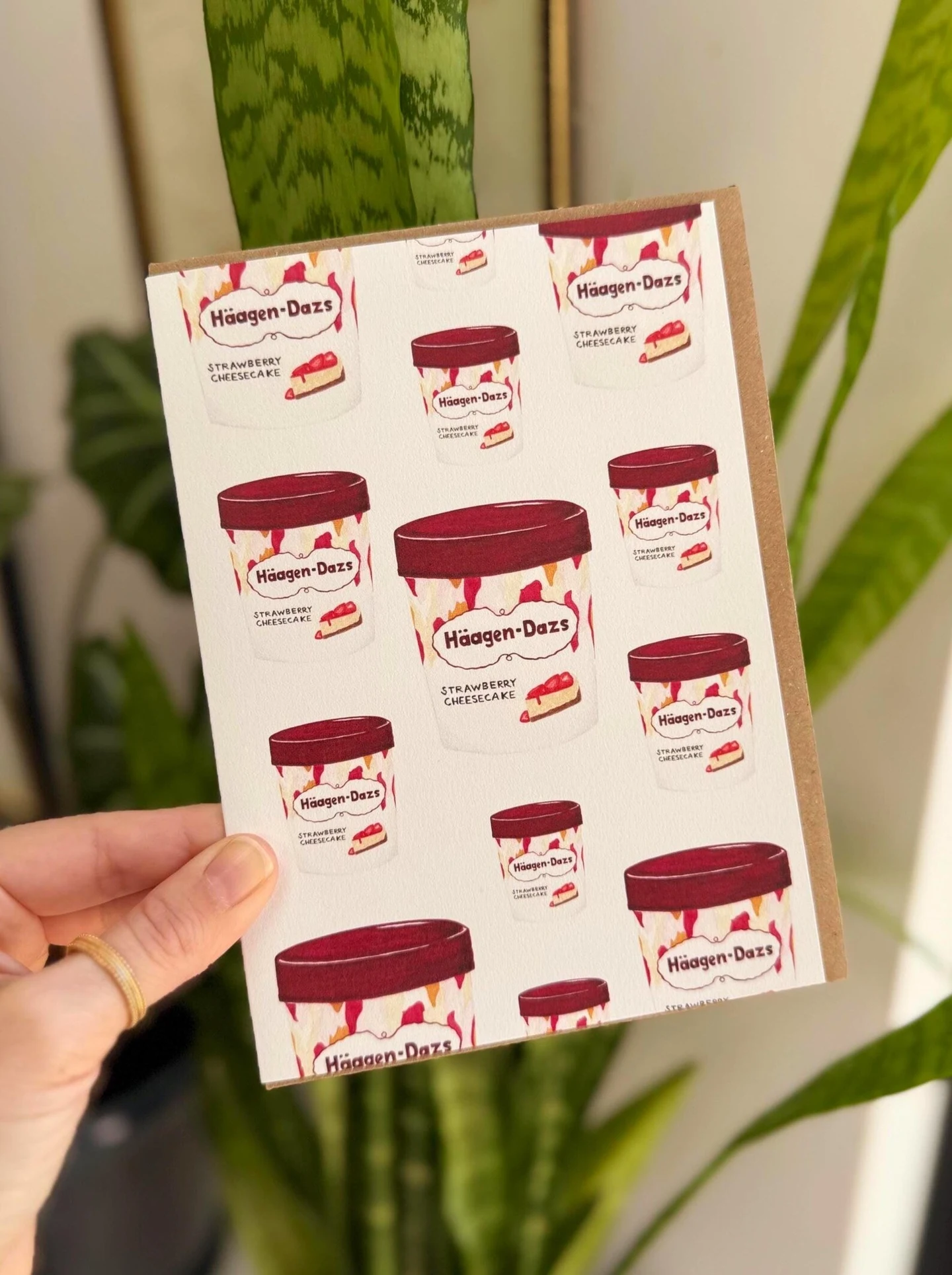 The perfect gift for any celebration or perhaps a birthday card for the strawberry cheesecake ice cream lover.
