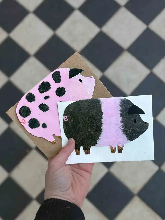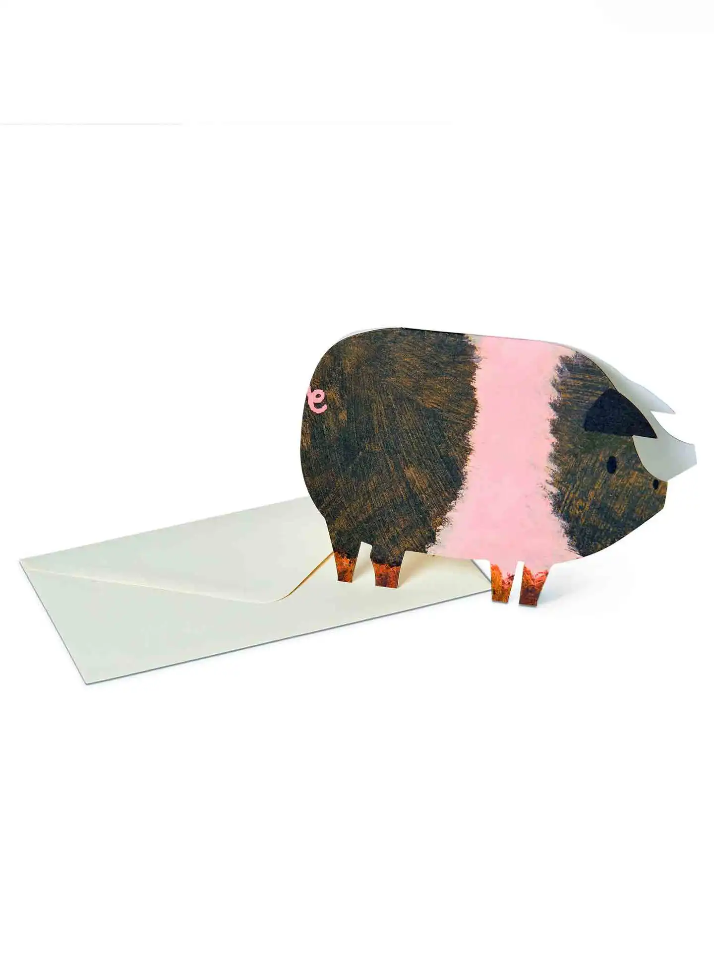 This pig greeting card forms part of the Mortlake Papers range of eco friendly greeting cards, created by UK based stationery brand Mortlake Papers. Known for design-led, sustainably produced paper goods, the collection is popular with gift shops, food retailers and independent stores looking for distinctive, plastic-free greeting cards.