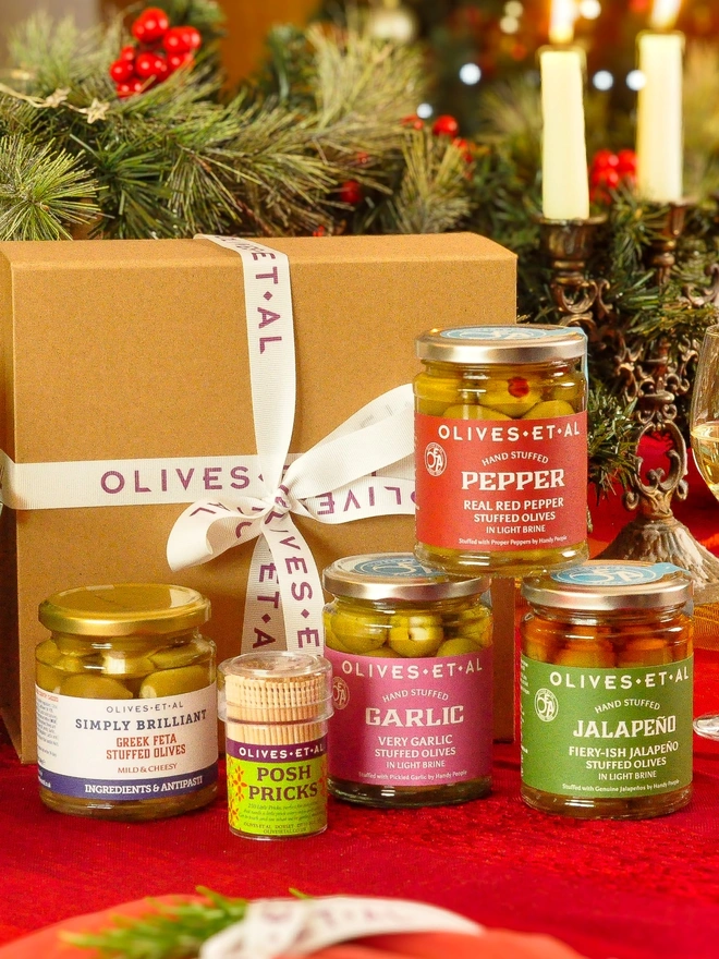 Give the gift of gourmet snacking with the Stuffed Olives Gift Set from Olives Et Al. Bursting with bold Mediterranean flavour, each jar features juicy, hand-stuffed olives paired with delicious fillings—from fiery jalapeños to creamy feta. Perfect for platters, picnics, or just eating straight from the jar.