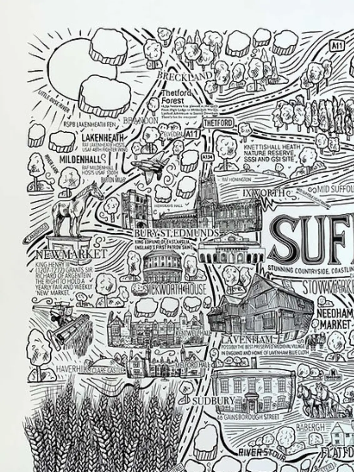 Explore Suffolk with a hand-drawn illustrated map by James Illustrates...