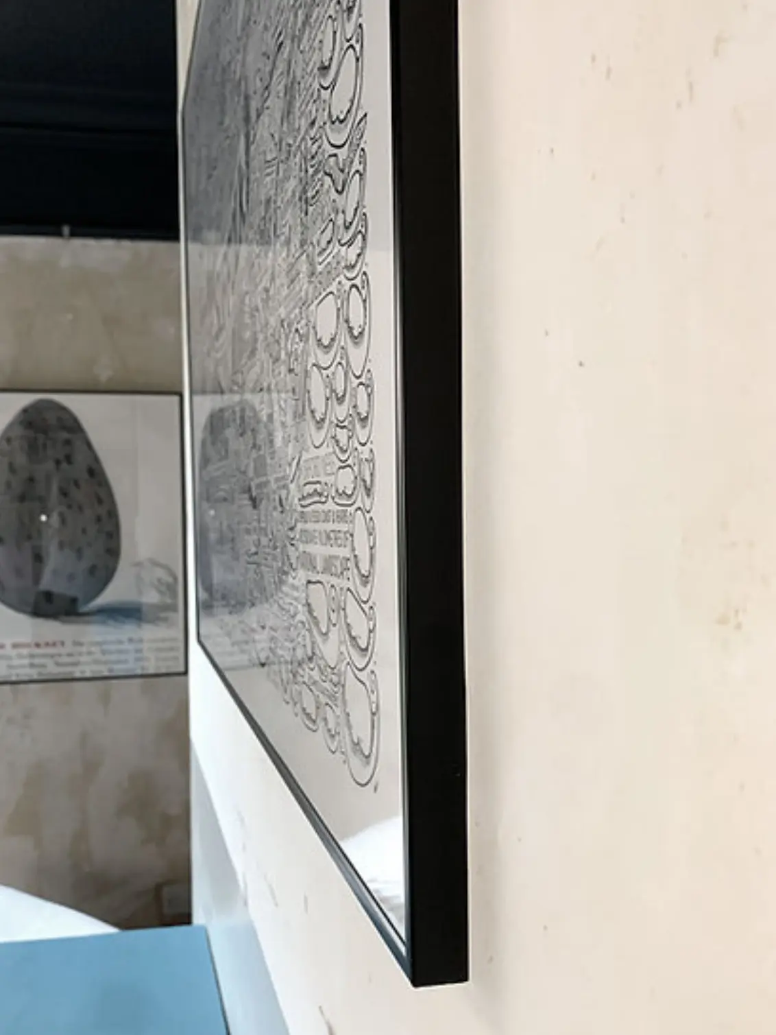 It is available with or without a black aluminium Nielsen Pearl Matt frame, glazed with high-quality Perspex acrylic. This simple yet elegant frame offers subtle quality and fine proportions that complement the illustrated map.