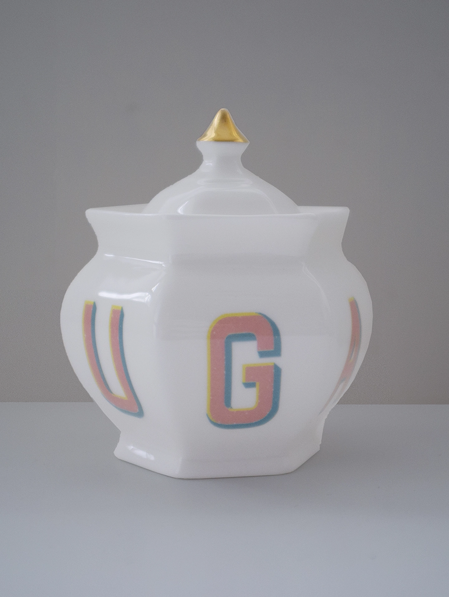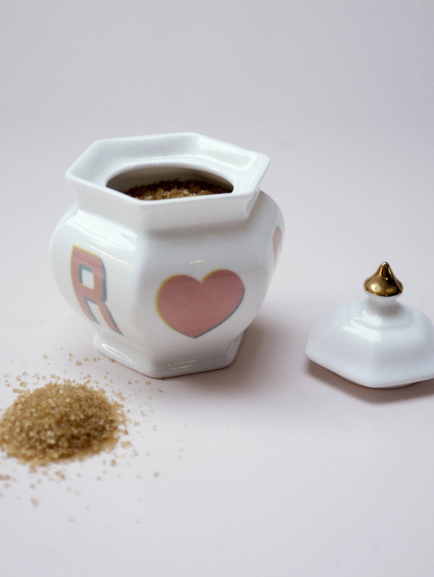 S U G A R and a heart on this beautifully faceted, Georgian & style pot with a splash of gold on the lid tip.