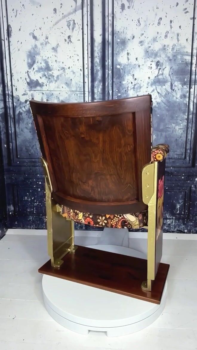 This seat features statement wooden panels on the legs, in the original cinema setting these legs would of been on the end of each row.