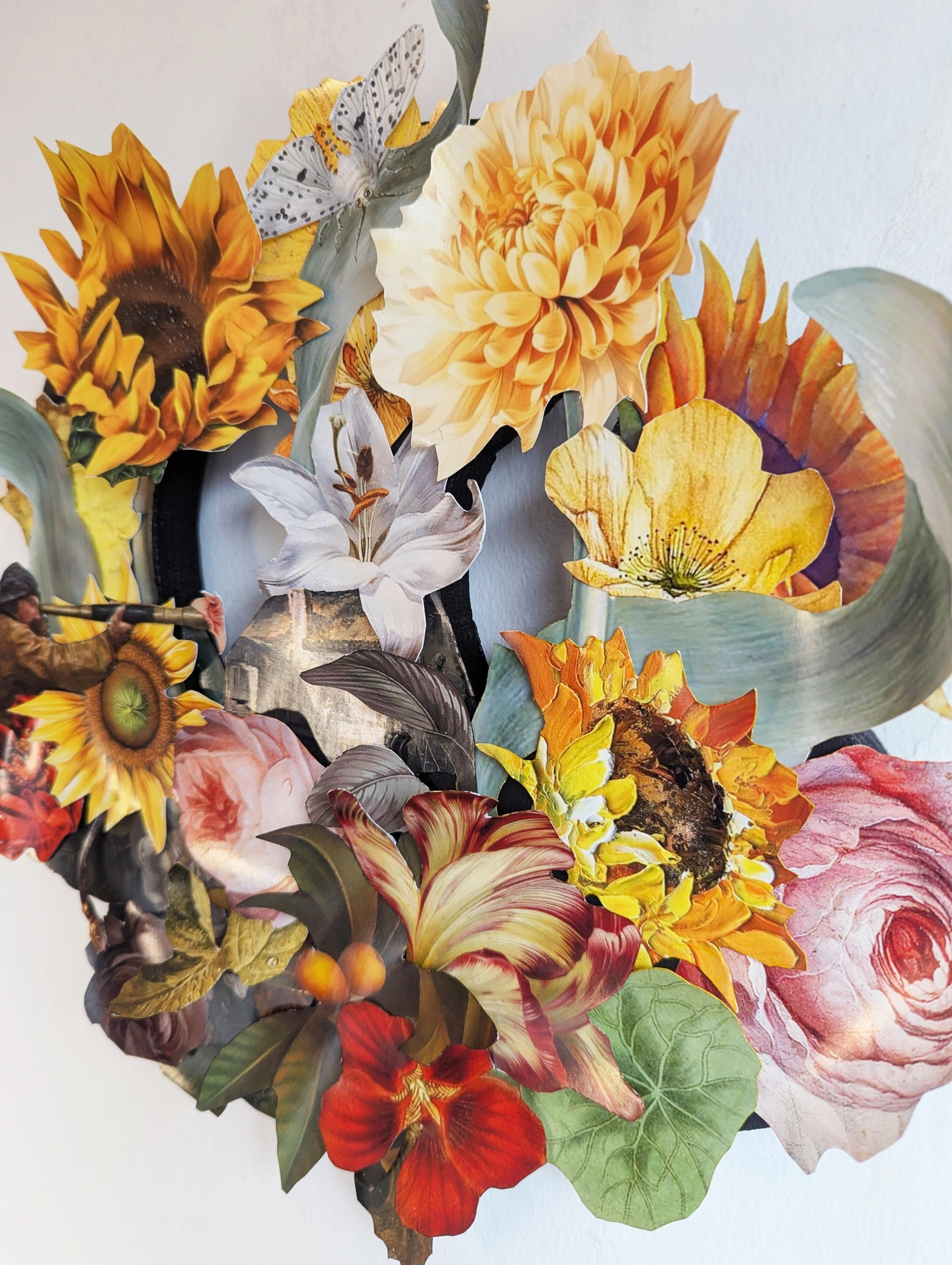Ready to hand and featuring dozens of meticulously cut-out flowers, printed on gorgeous photographic paper. Arranged on specially designed recycled wood.