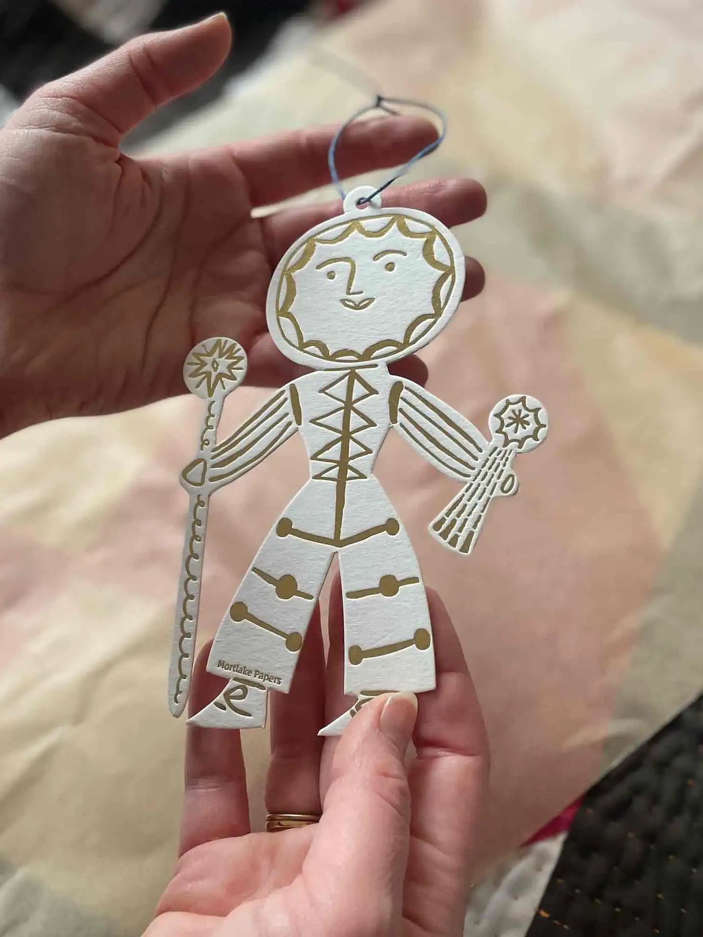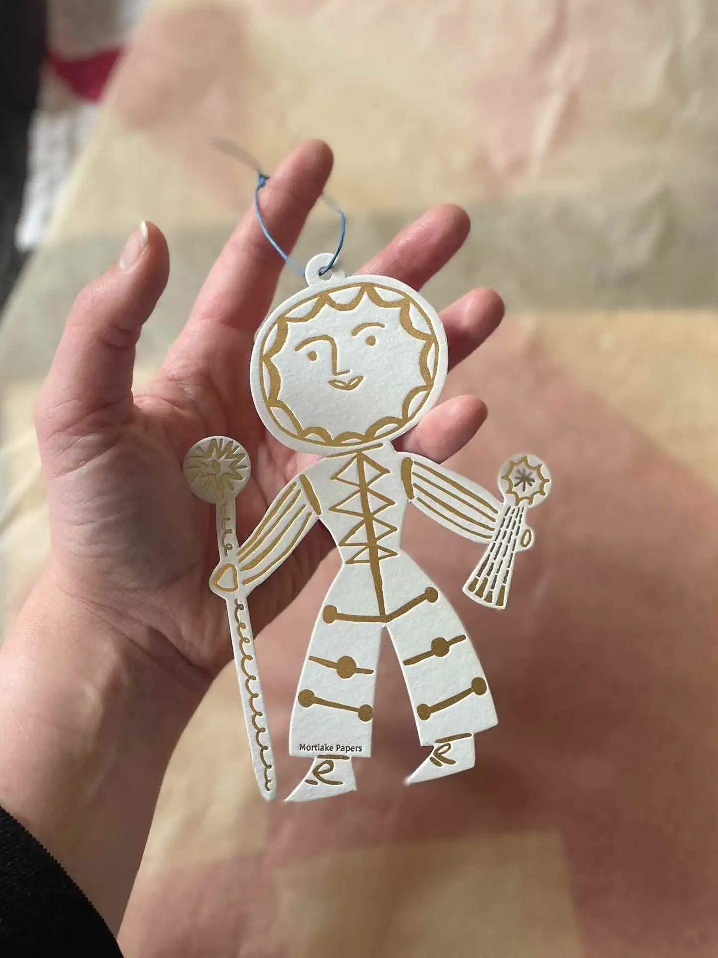 This thick card Christmas ornament is part of a collection of sustainable folk-inspired paper decorations from UK stationery brand Mortlake Papers, which specialises in turning original artworks into eco-friendly greeting cards and keepsakes. Each unique paper bauble is printed in Scotland and carefully packaged without plastic.