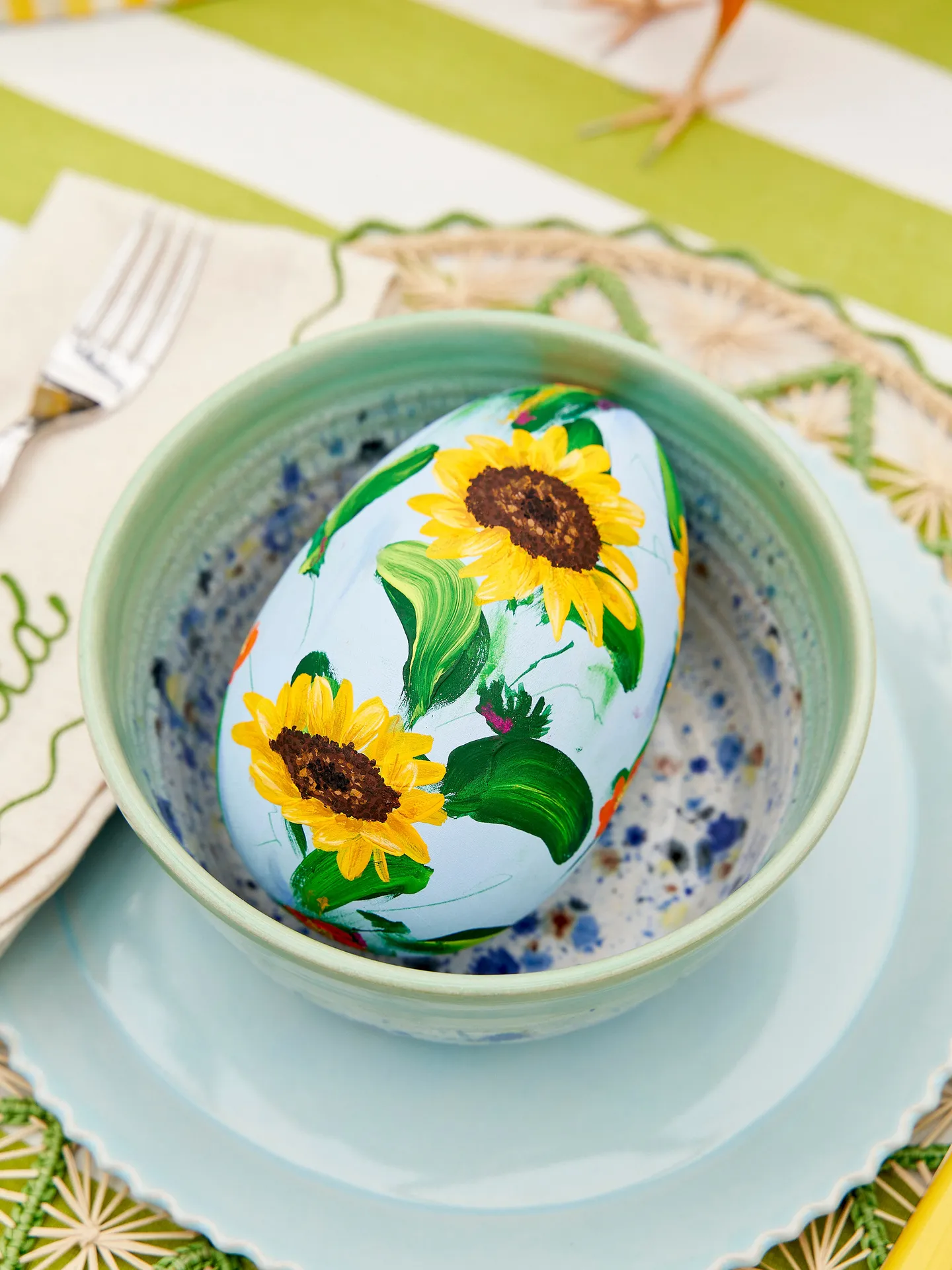 'Sunflower' Hand Painted Floral Wooden Egg in Soft Blue