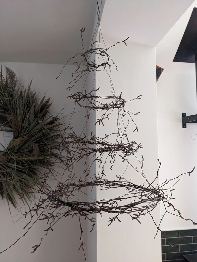 Suspended Birch Branch Wreath – 85cm Hanging All-Year Decoration