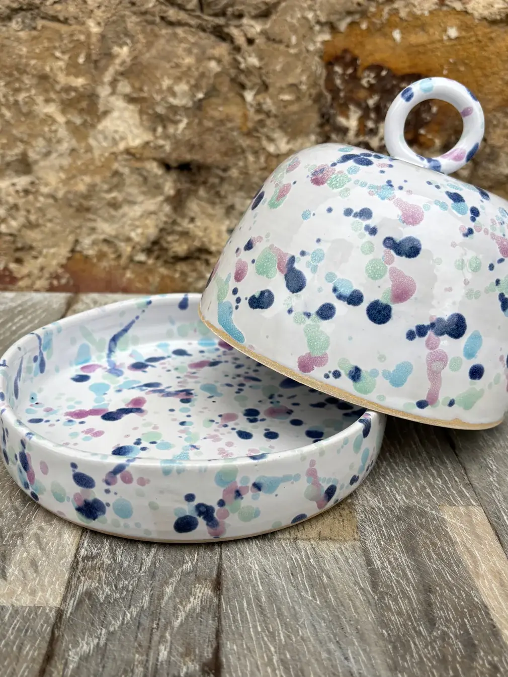 Elevate your breakfast set with a wheel thrown butter dish and lid that will impress any guest or simply bring joy to your morning. Designed to make scooping butter easier with raised edges...