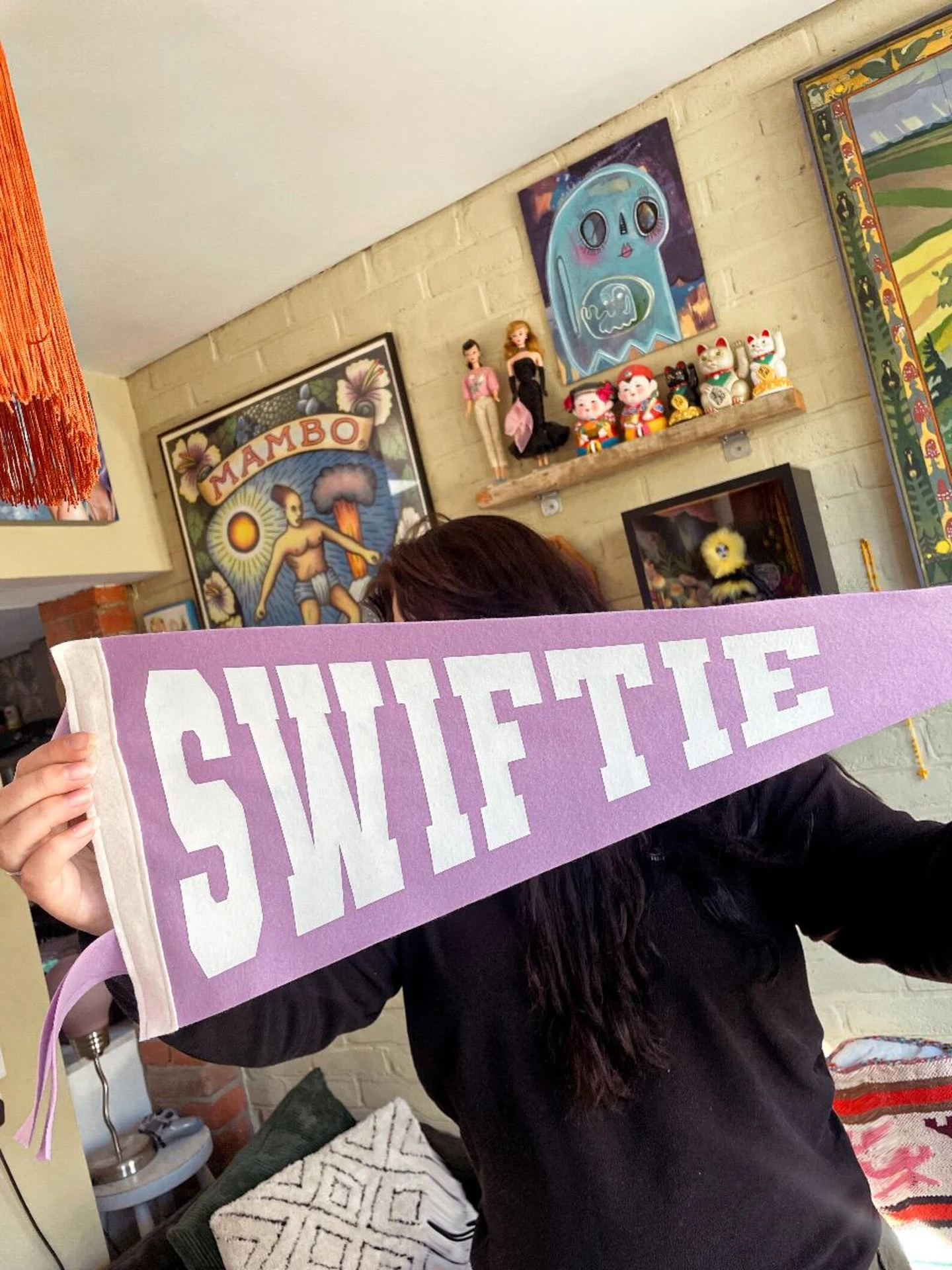 Lovely lilac felt handmade into a smart pennant flag for Taylor Swift fans and lovers. Works well anywhere in the house—kid's bedroom, hallway, lounge, or dining room. Inspired by American vintage pennant flags, put it wherever you need a little bit of ar...