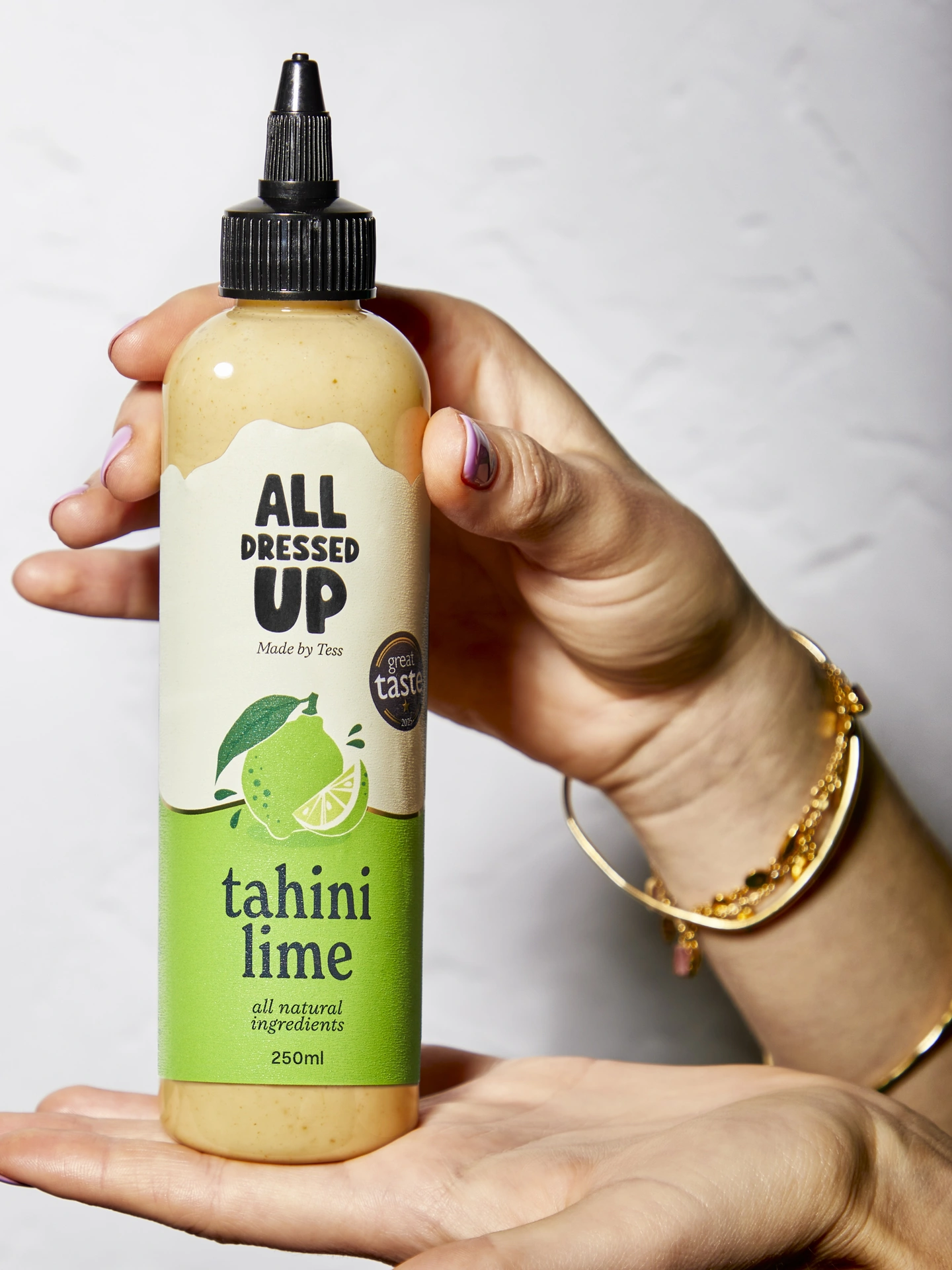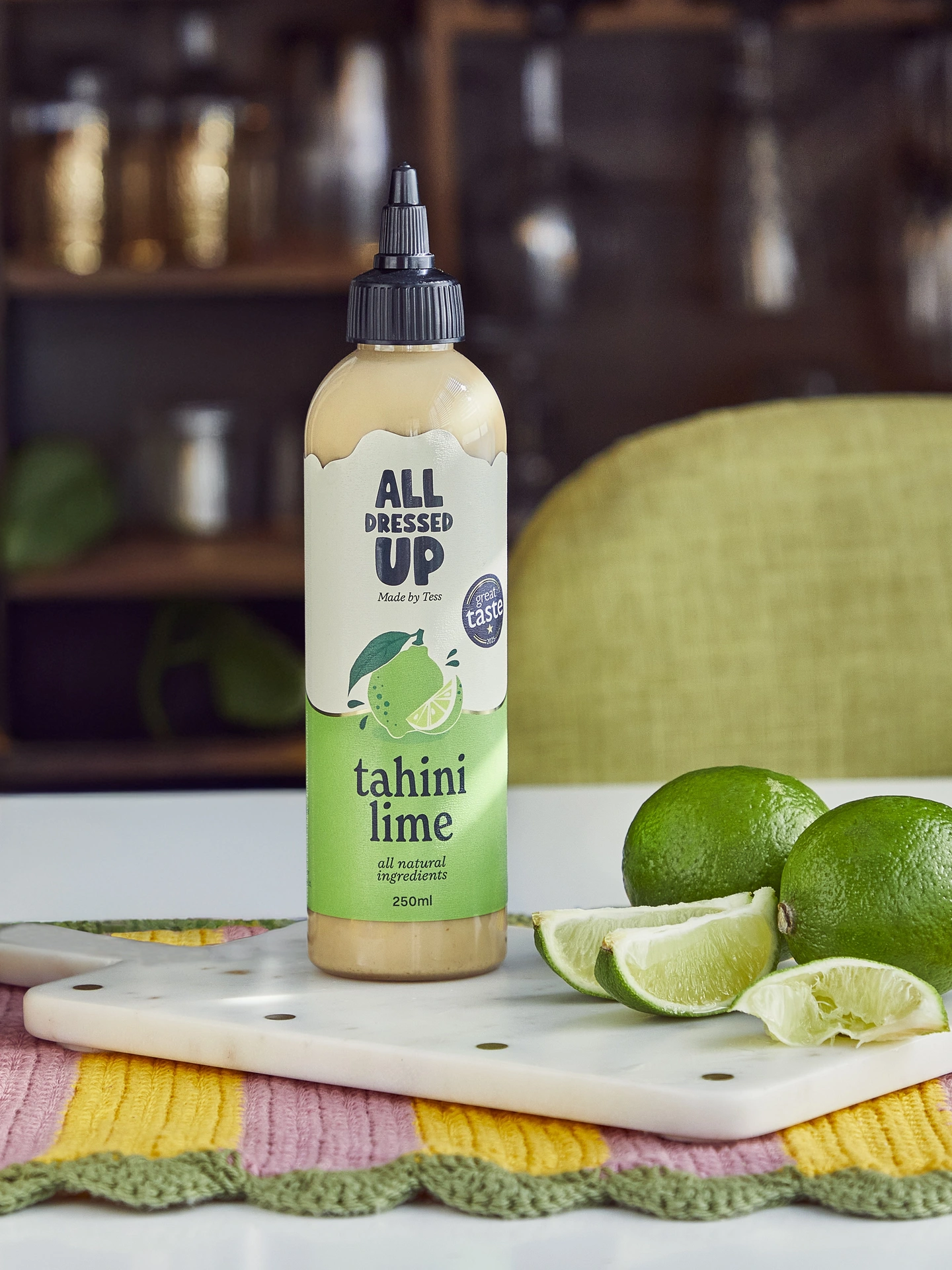 Ingredients : Rapeseed Oil, Tahini (Sesame) (26%), Lime Juice (17%), White Wine Vinegar, Honey, Rice Vinegar, Maple Syrup, Tamari Soy Sauce (Water, Soybeans, Salt, Spirit Vinegar), Salt, Ground Cumin.