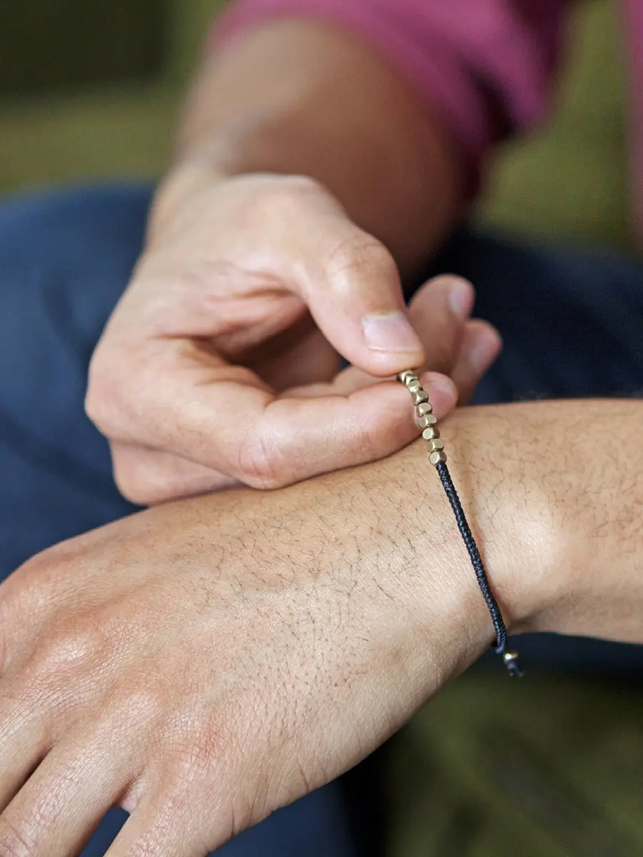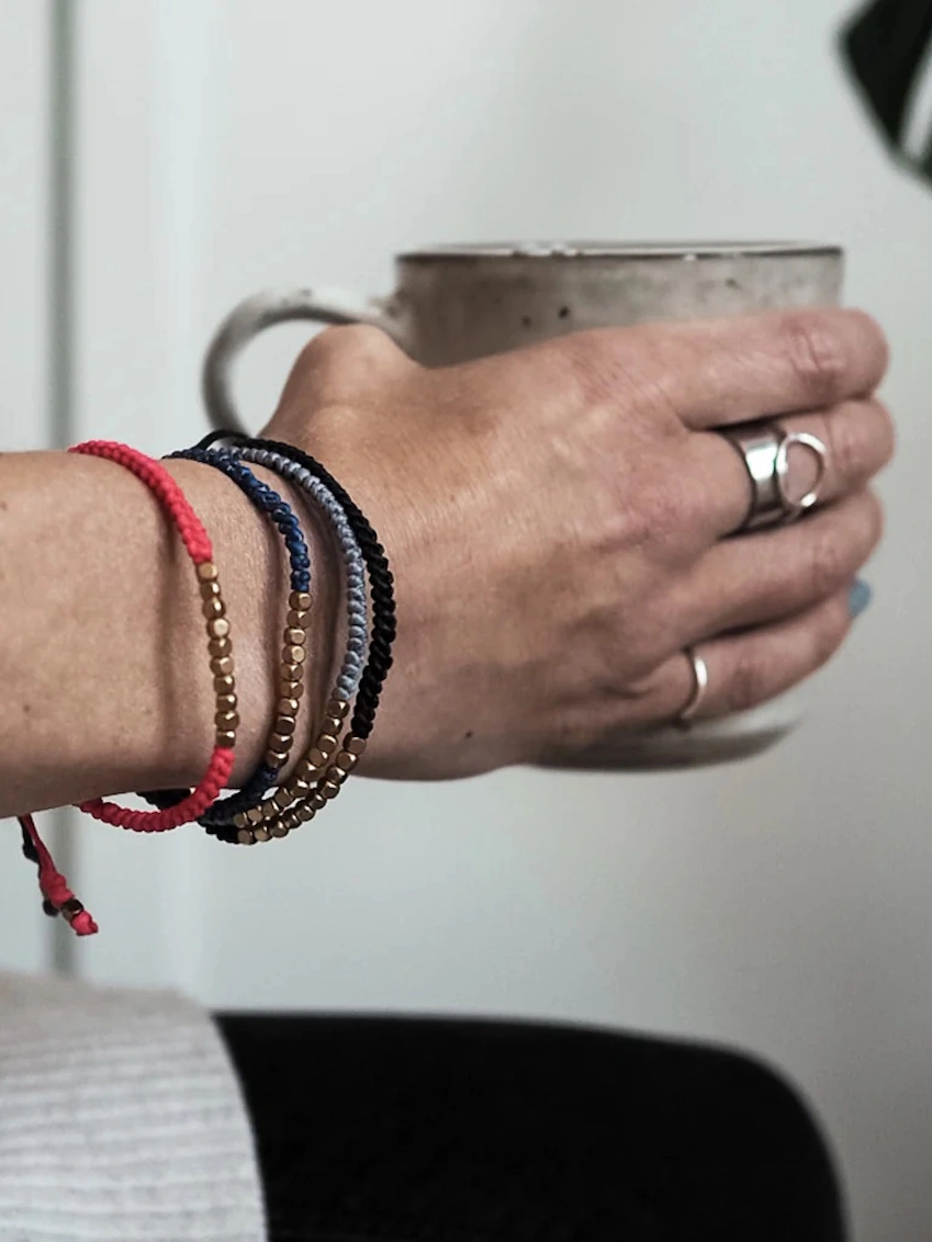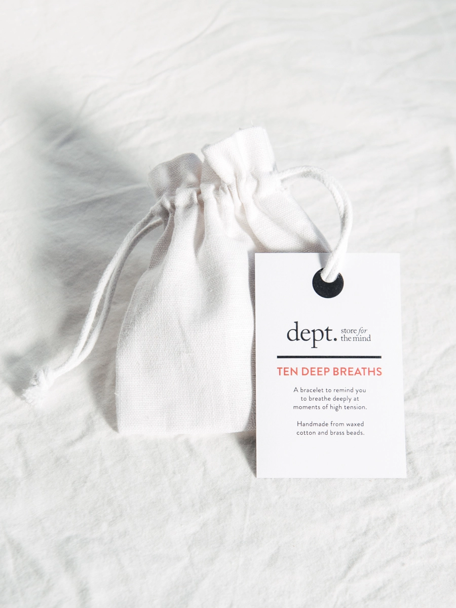 Find calm with the Ten Deep Breaths Bracelet – a simple, wearable reminder to pause and breathe deeply in moments of stress. Each bracelet features 10 brass beads on waxed cotton, designed to guide you through a grounding breathing exercise: inhale and exhale once for each bead, slowing your breath until tension fades.