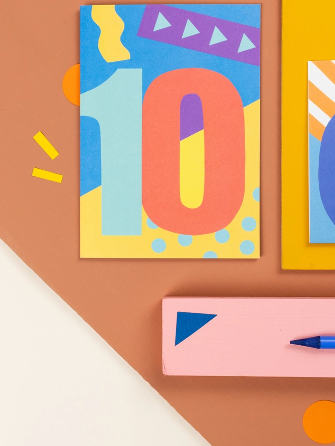 Cute patterned tenth birthday card for the ten-year-old in your life.