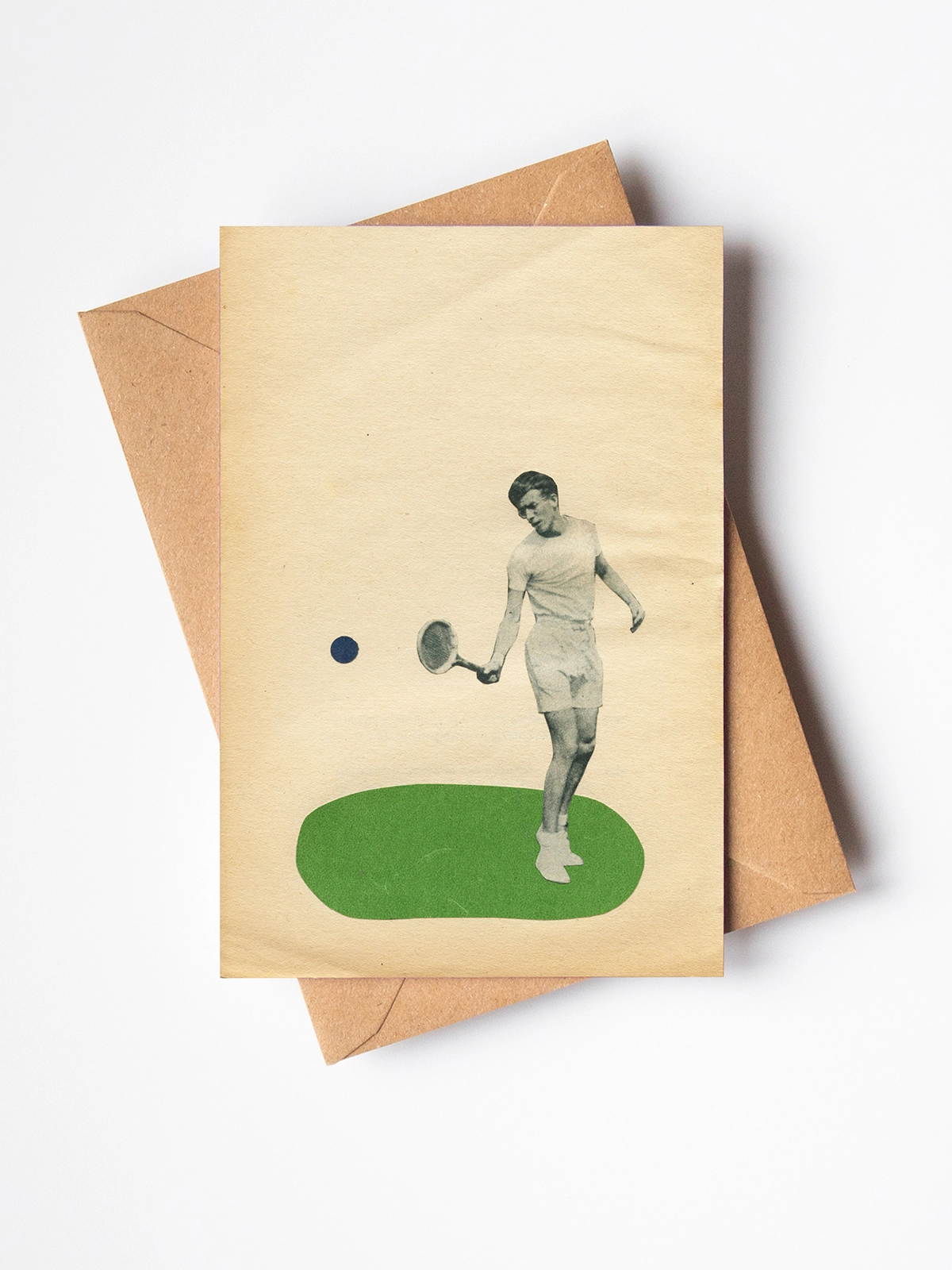 A single blank greetings card with a male tennis portrait design on the front. If you know a Wimbledon watcher or keen player, they will enjoy this fun card.