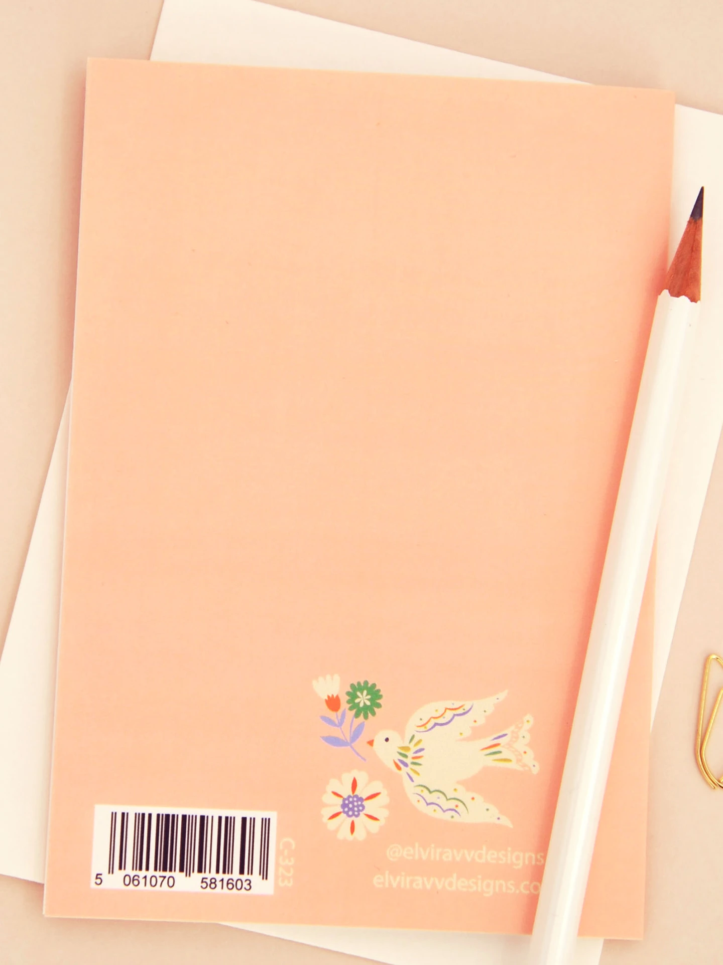 • Colour palette: Creamy pink with orange, blue & green accents