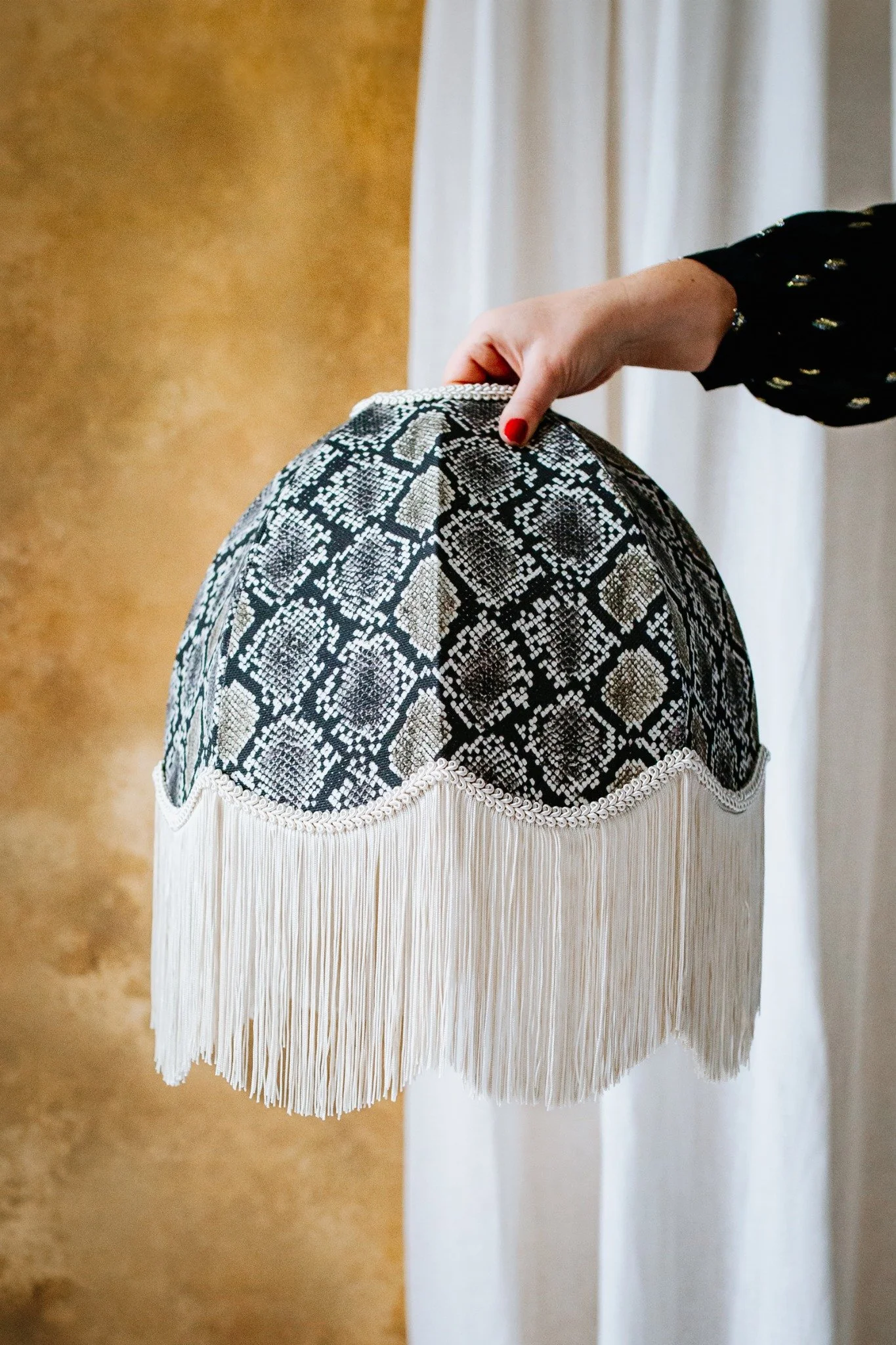 The Bianca Snakeskin Fringed Lampshade
