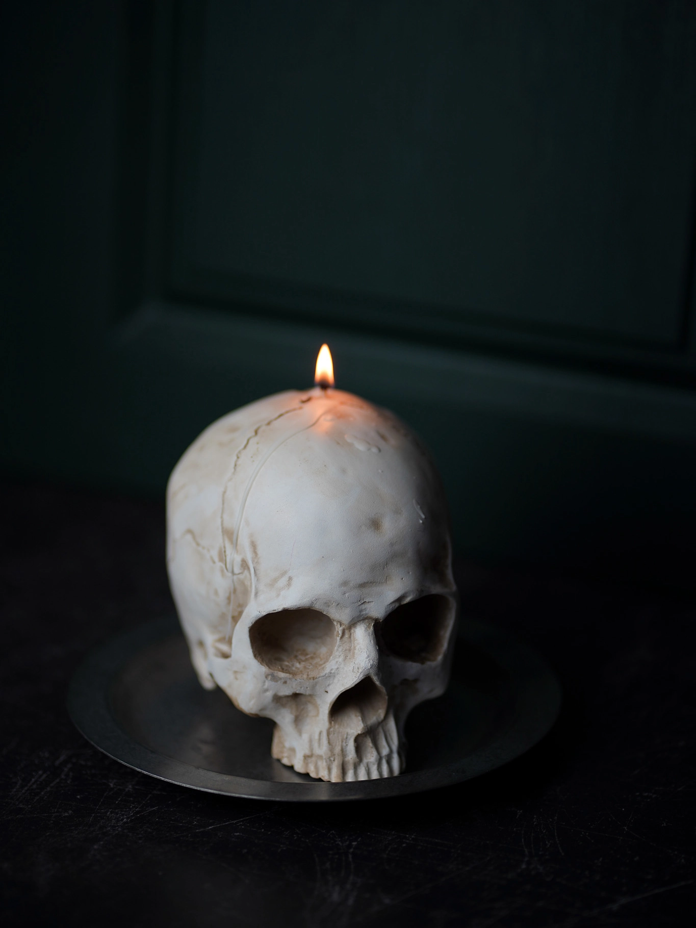 A candle for collectors, dreamers, and the delightfully morbid, where wax becomes bone, and the flame burns with quiet knowing.