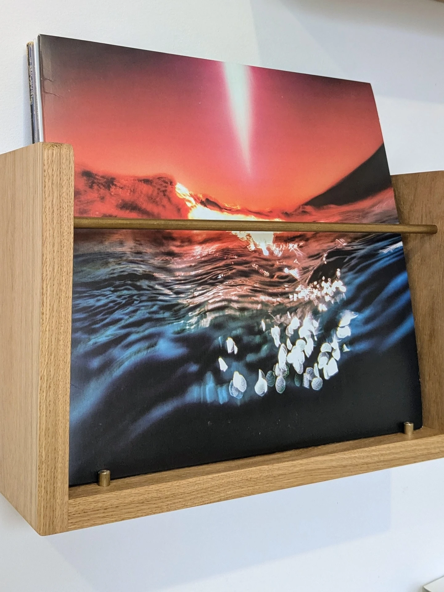 These stunning vinyl display shelves are thoughtfully created from solid Oak (pictured) Ash or Walnut and come with the unique option of either a solid raw steel or brass bar depending on your vibe.