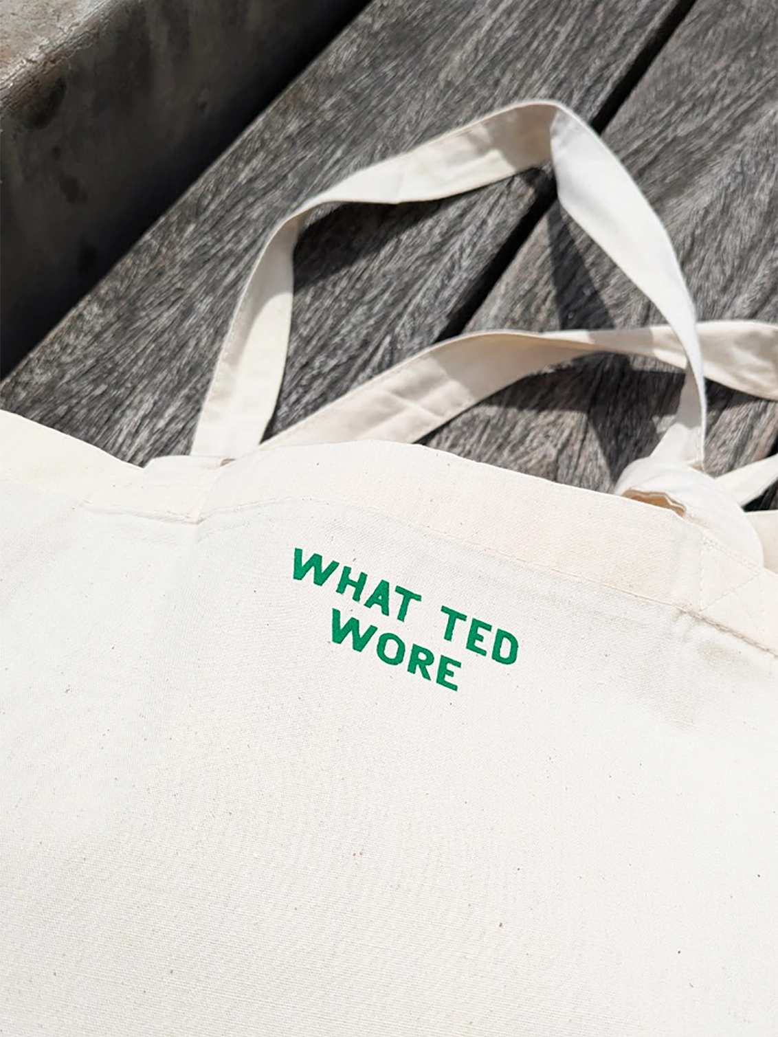 A beautiful and bright ‘Eyebags’ slogan on a sturdy natural canvas tote bag.
