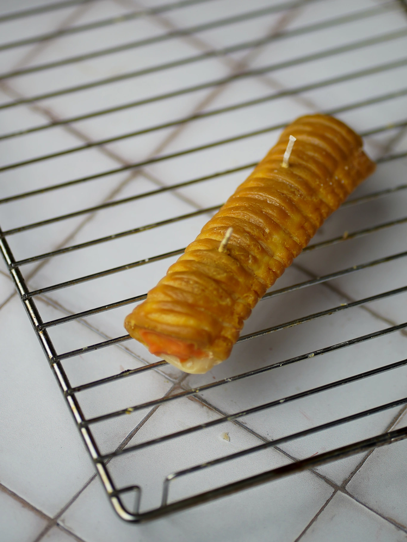 Each life-sized candle is lovingly hand-crafted and finished to perfection: the Sausage Roll Candle boasts golden, flaky pastry and meaty wax ends, while the Chicken Bake Candle hides a creamy melt-in-the-middle surprise, a delightful nod to the comforting indulgence of the real thing.