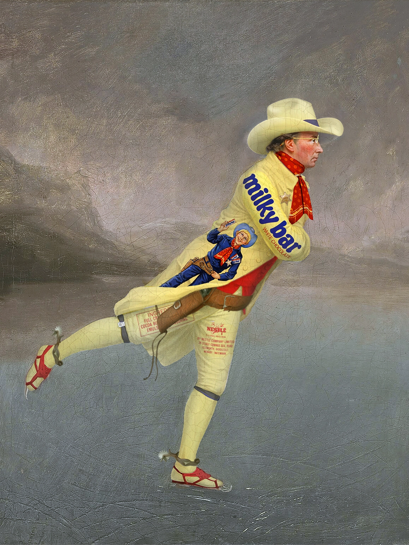 Part of a large ongoing series of works called The Product Placement Project. Humorous & fun Pop-Surrealist work exploring the connections and boundaries between art and advertising and a reflection on the functions of fashion & clothing