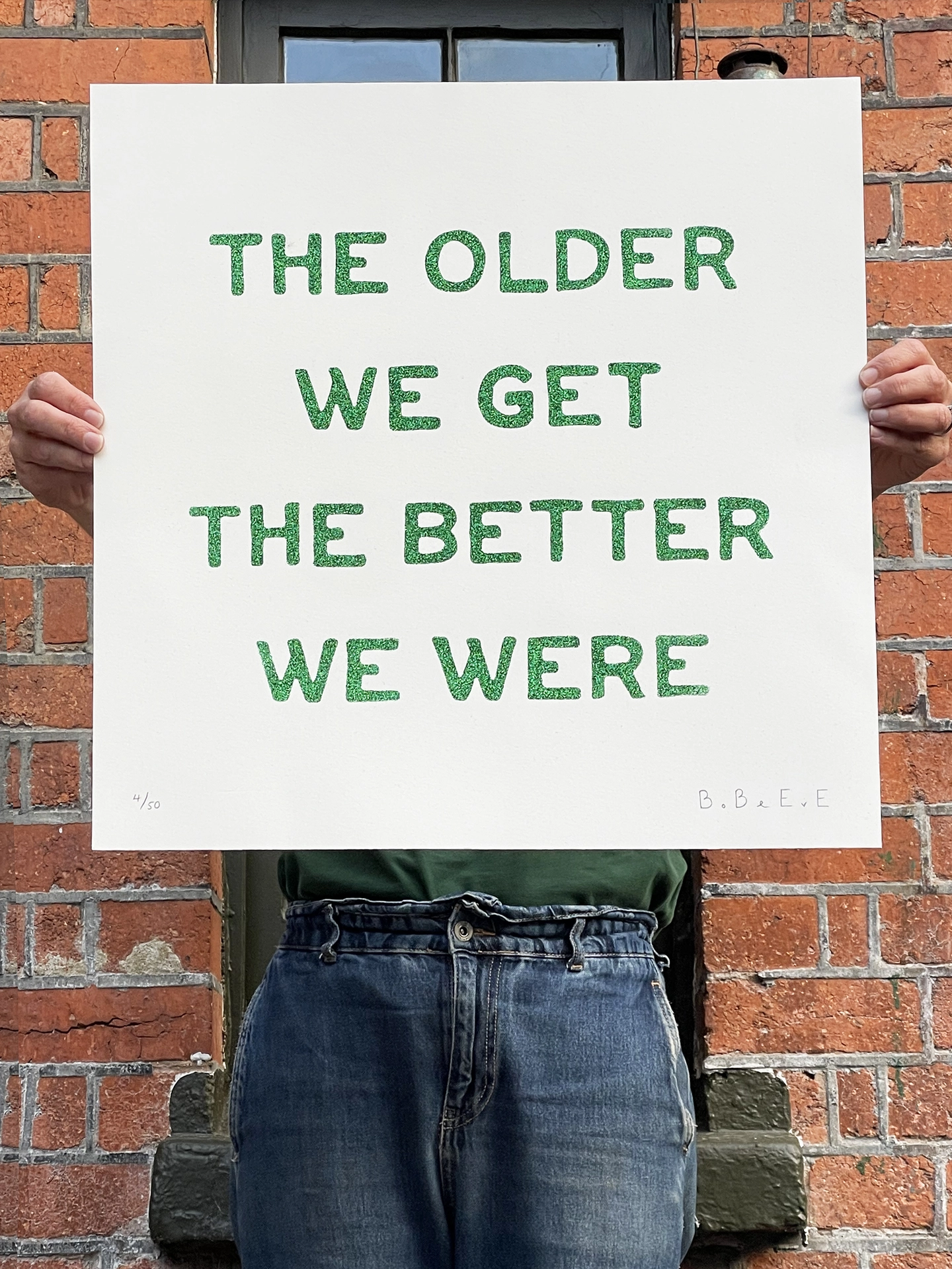 Hand pulled screen print finished with coloured diamond dust. Printed on to Somerset Satin 400gsm paper, signed and editioned.