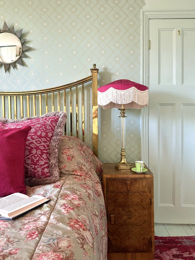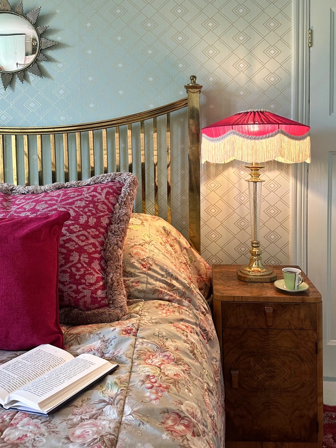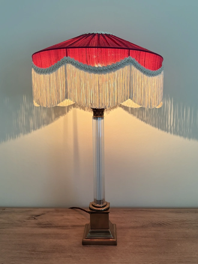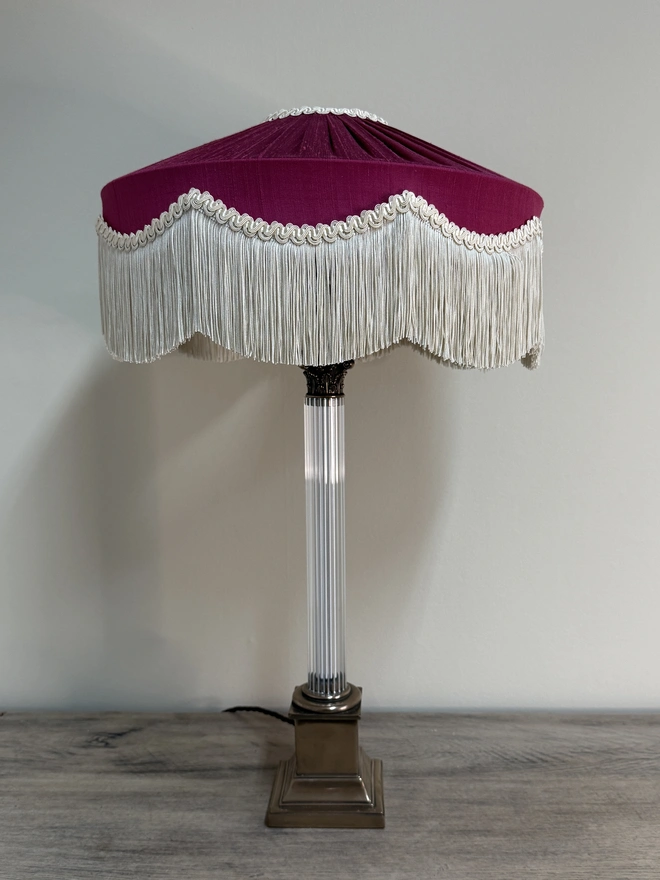 The Peggy Silk Fringed Lampshade - Burgundy