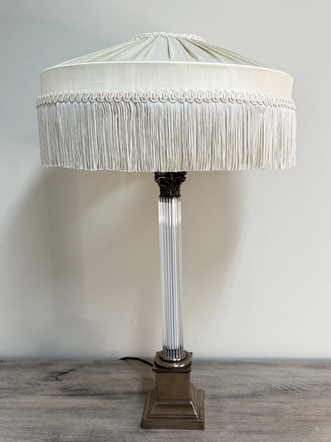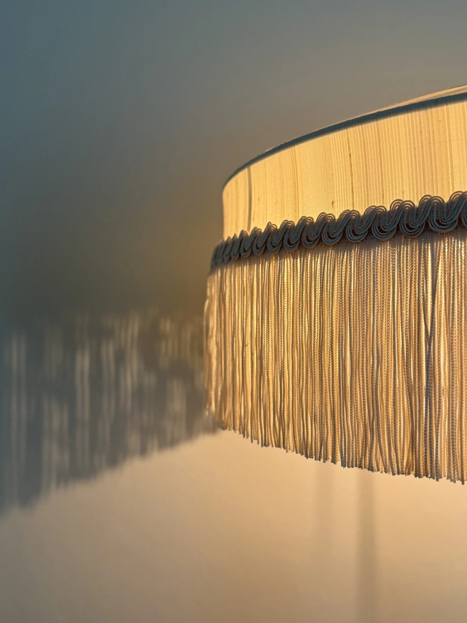 Our Peggy silk shade adds a touch of vintage-inspired glamour to any interiors scheme. The silk is traditionally hand-stitched onto the frame and finished with our signature fringe - it's destined to be a future heirloom. Inspired by the Art Deco era, it's ideal for placing in an entrance, living room or bedroom.