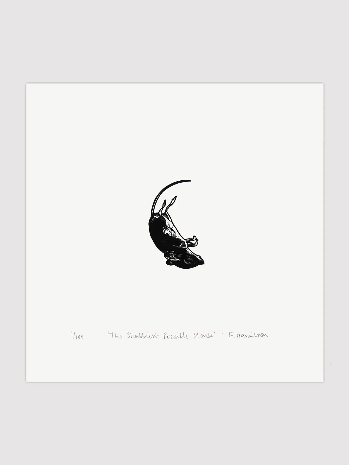 This original art print is a wood engraving of a mouse, The Shabbiest Possible Mouse from Aesops Fables. It is a very detailed illustration using fine wood engraving tools on a highly carved piece of box wood...