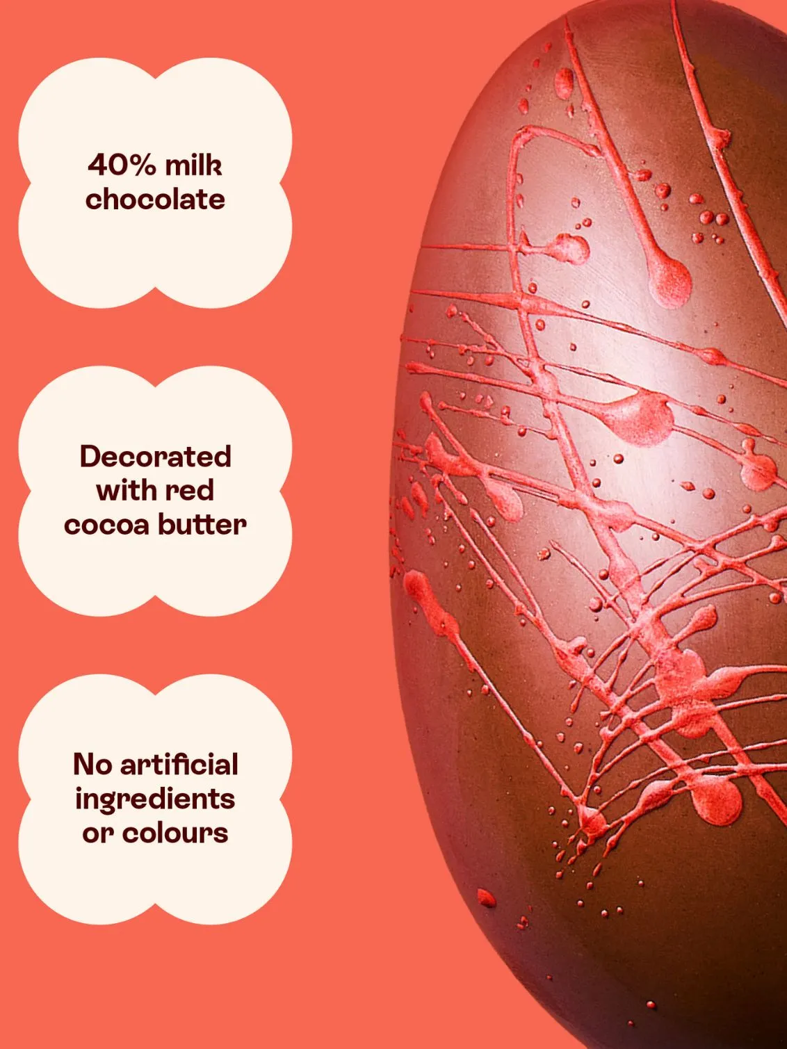 This combo includes a milk chocolate Easter egg, and a box of 6 maple & pecan filled artisan chocolates hand-decorated with red cocoa butter splatter.