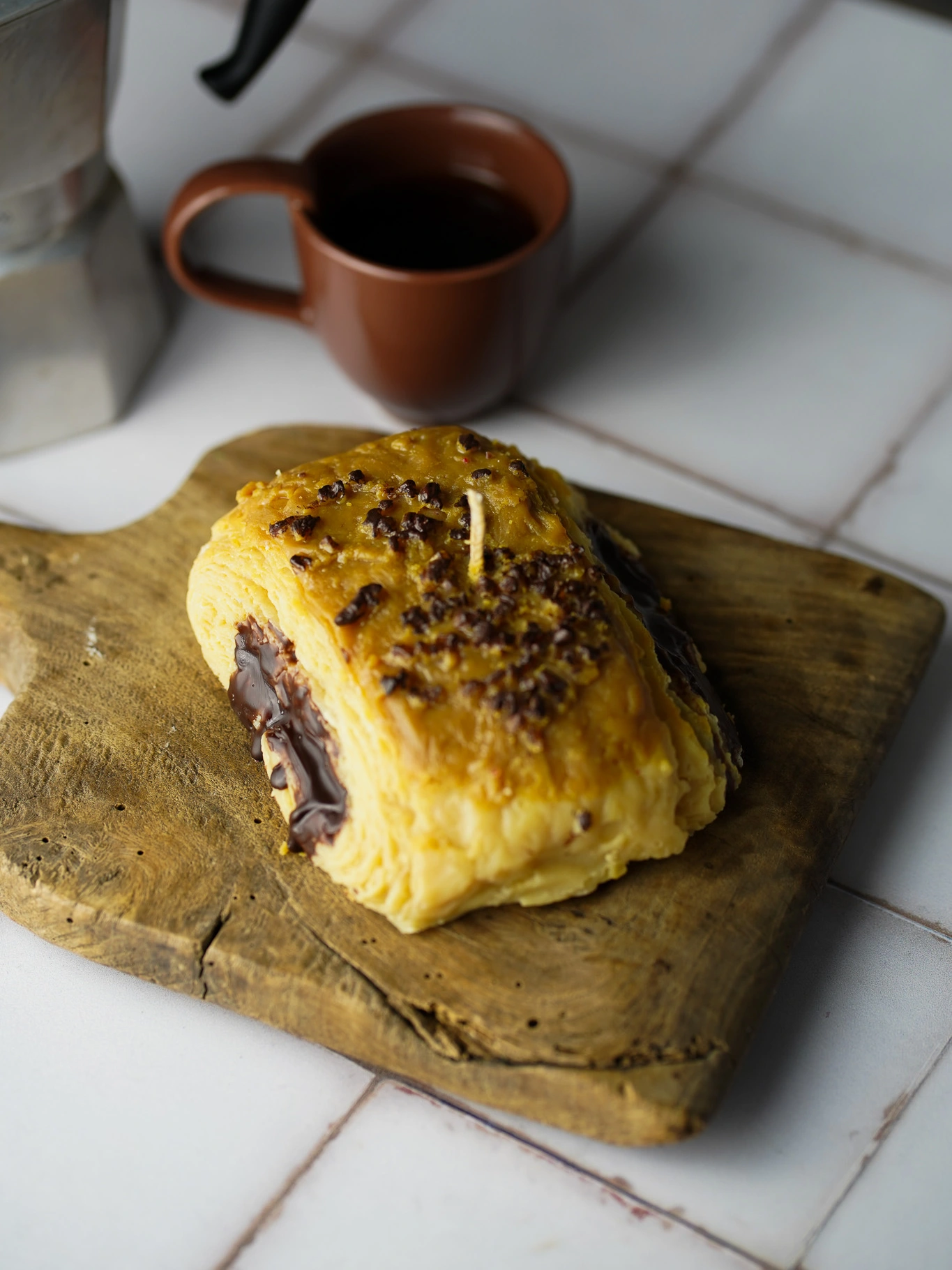 A celebration of indulgence, our Triple Choc Pan Suisse Candle is a waxy ode to one of the most beloved Parisian pastries. Life-sized and unscented, each candle is lavishly adorned with glossy wax cocoa nibs and finished with decadent chocolate-like sides that appear to melt in delicious ribbons.