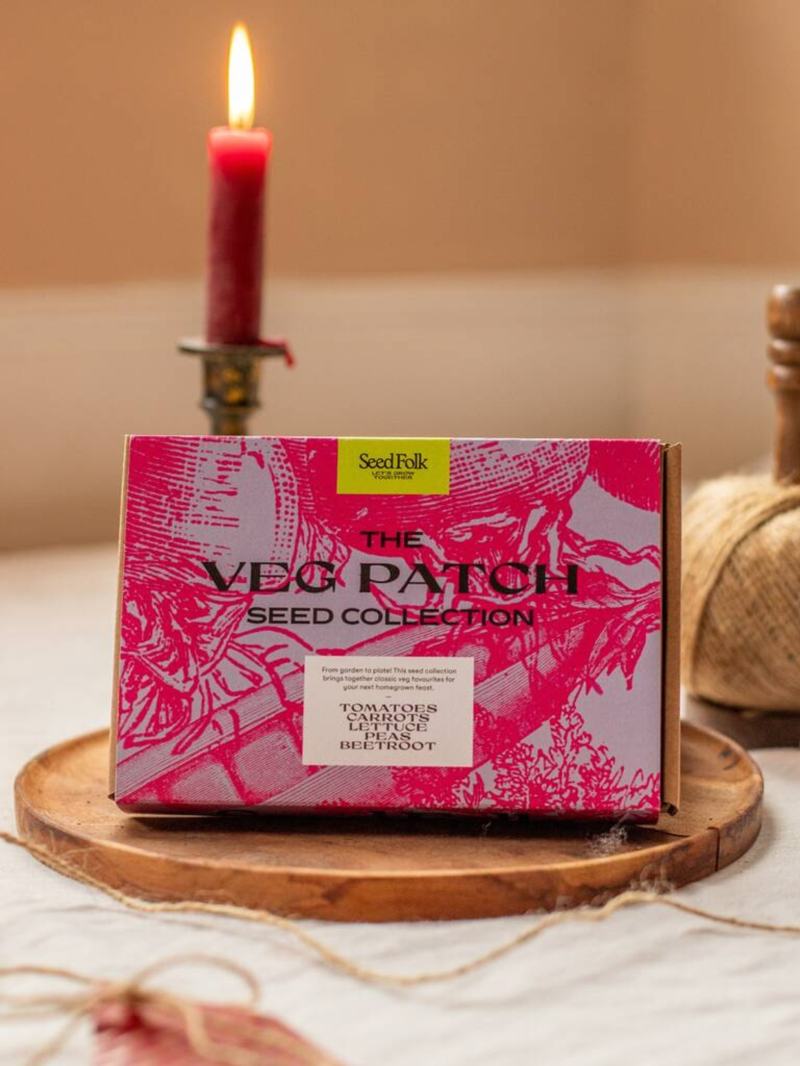 Inspire someone to grow with The Veg Patch; a beautifully curated seed collection featuring tomatoes, carrots, lettuce, peas and beetroot.