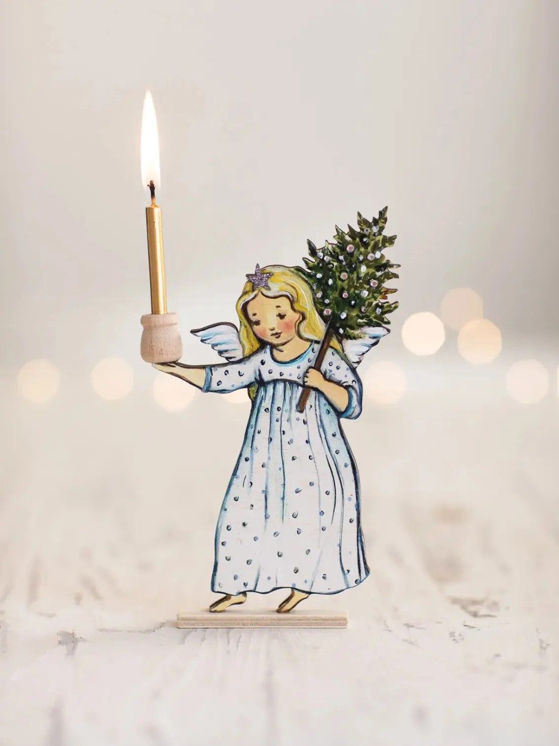 This charming freestanding wooden angel candle holder, designed by Amy and made in Wales, brings a whimsical sparkle of magic this Christmas.