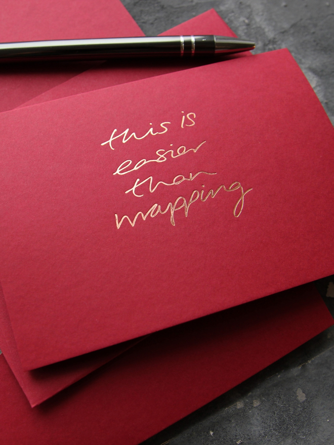 Let’s be honest: cash is always the right size. Our This Is Easier Than Wrapping card keeps it real in handfoiled rose gold on scarlet paper. A luxury shortcut for Christmas gifting - stylish, straightforward, and guaranteed to get a laugh. Comes with a matching envelope to keep things tidy.